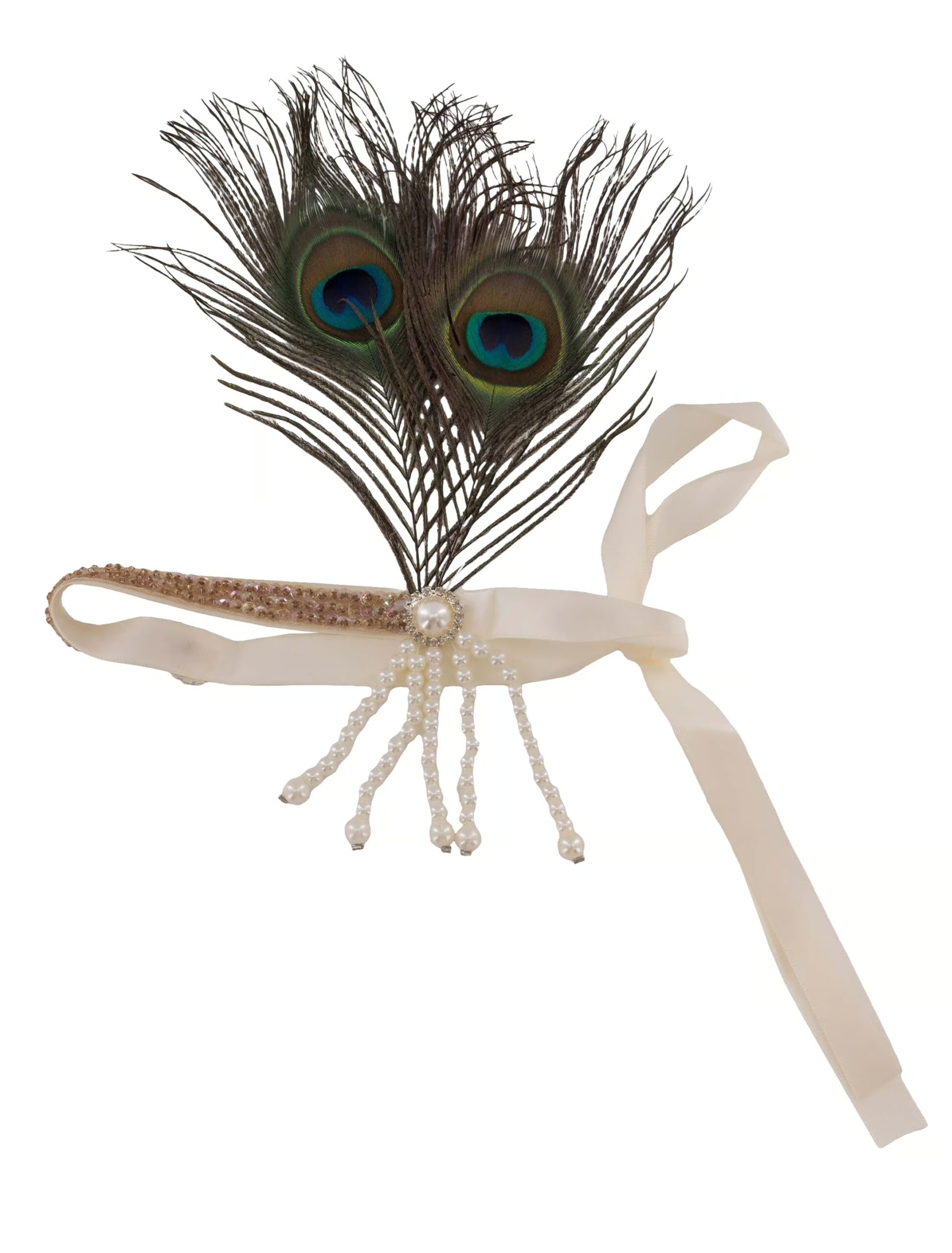 Kostümzubehör Haarband mit Quaste und Federn schwarz/gold