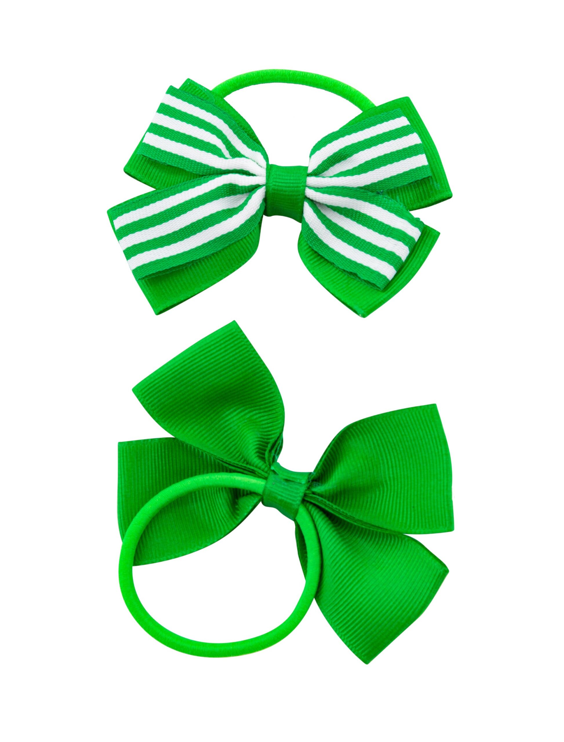 Praktisch und dekorativ sind unsere grünen Haargummis mit der auffälligen, grün -weiß gestreiften, großen Haarschleife, die nicht nur Deine trendigen Alltag und Freizeit Outfits geschmackvoll abrunden, sondern die Du auch zum dekorativen Aufhübschen Deiner angesagten Mottoparty-, Faschings- und Karnevalskostümierungen verwenden kannst. Sie halten Zöpfe und Pferdeschwanz in Form und sind gleichzeitig wirkungsvolle Blickfänger, die Deinen individuellen Look repräsentativ unterstreichen.