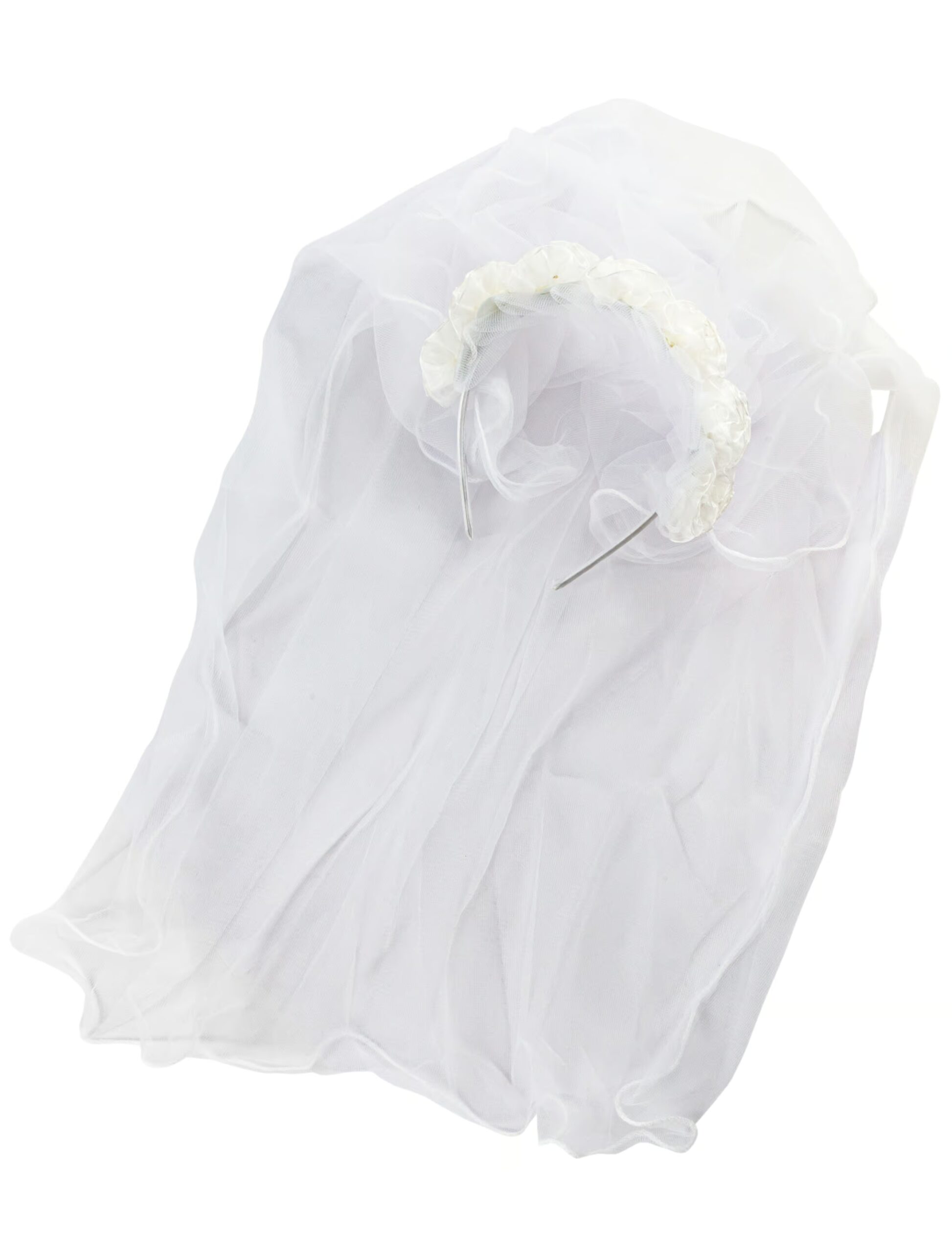 Dieser wunderschöne Haarreif mit dem langen, weißen Brautschleier aus Tüll und dem liebevoll gestalteten Röschendekor ist nicht nur für echte Bräute interessant, sondern auch ein hübsches Accessoire für ausgefallene und raffinierte Kostümideen. Er ist ein bezauberndes KostümZubehör und ein charmanter Hingucker mit dem Du sicher zum Karneval, Fasching sowie auf Motto Partys so manchem eingefleischten Junggesellen den Kopf verdrehst.