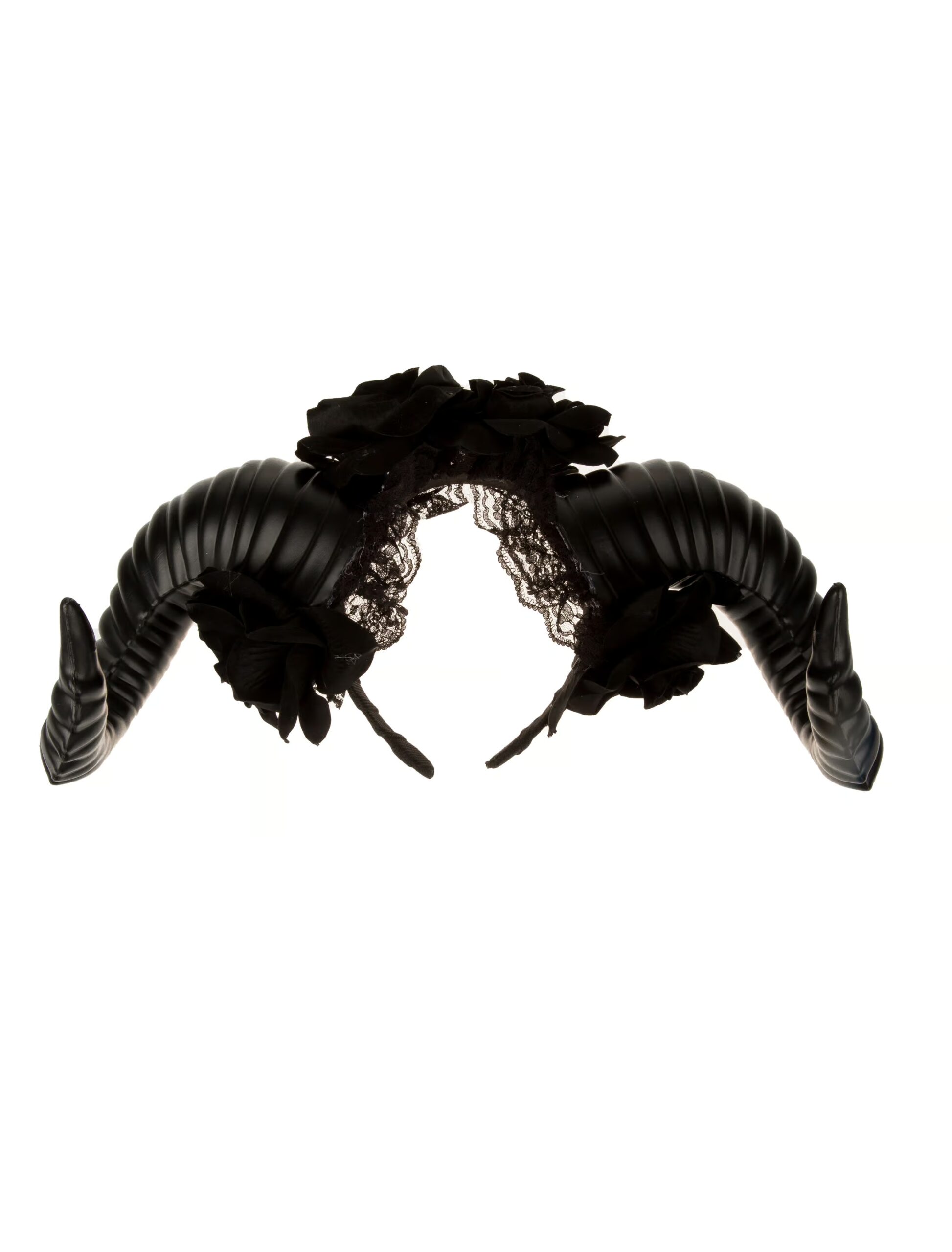 Kostümzubehör Haarreif Hörner mit Blumen schwarz