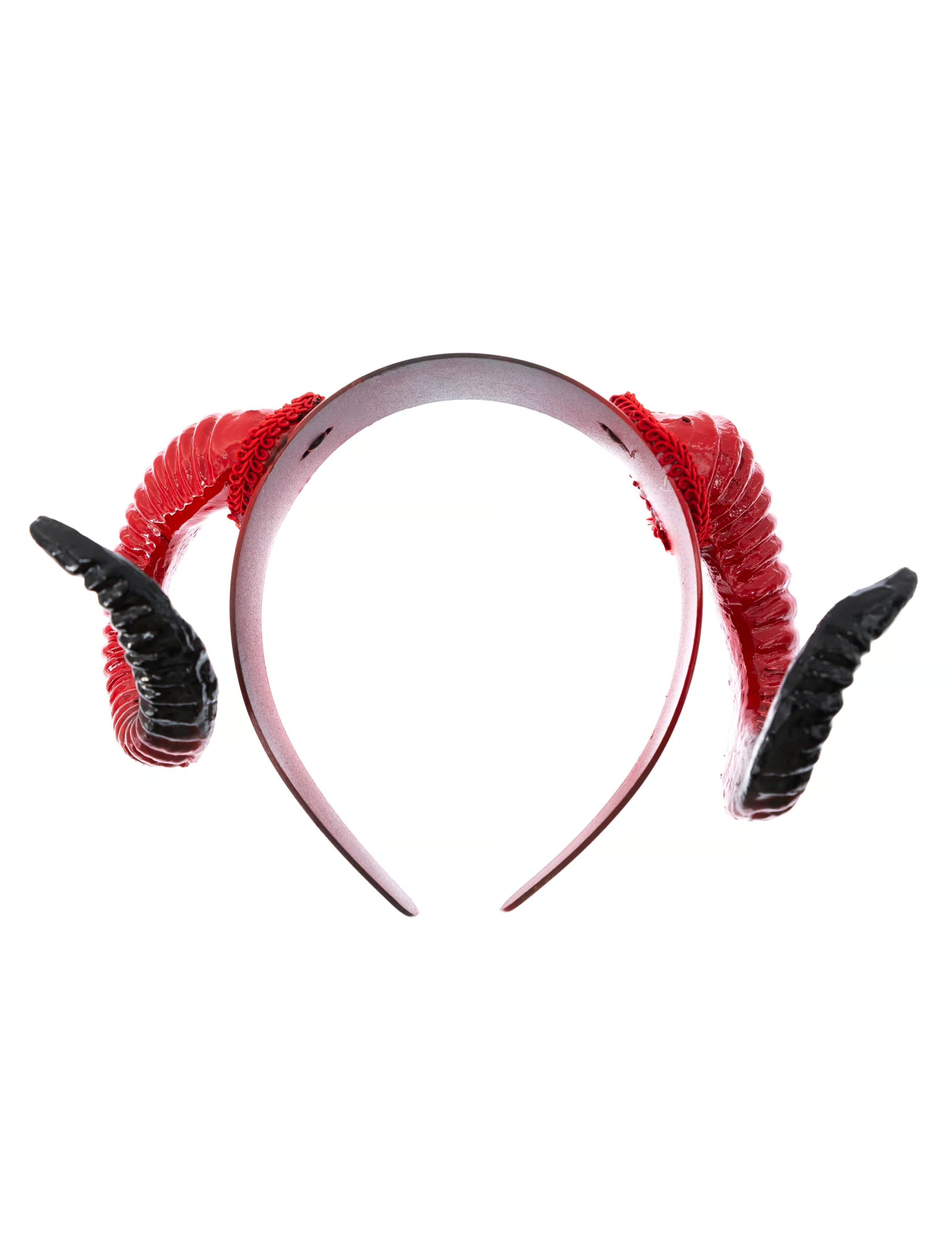 Kostümzubehör Haarreif Hörner rot gebogen und Spitzen schwarz