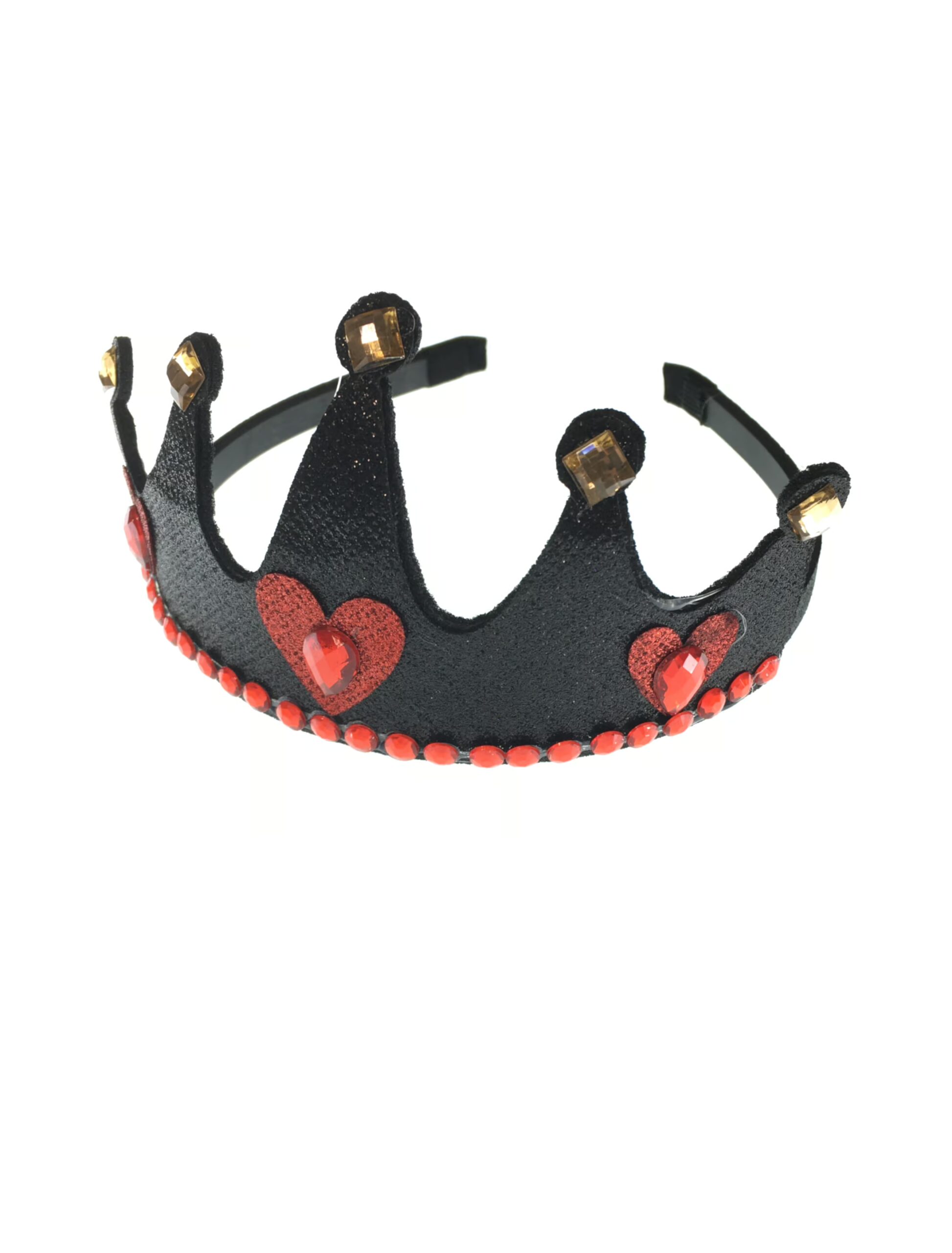 Wir haben da etwas für Dich, um Dein Prinzessinnen oder Königinnen Kostüm einfach perfekt aussehen zu lassen. Dieser Haarreif mit schwarzer Krone und Herzen ist ein echter Hingucker. Die Krone hat eine Höhe von etwa 7,5 cm und ist mit roten Strasssteinen geziert. Ein schöner Kopfschmuck zu Karneval, Fasching oder zur nächsten Mottoparty.