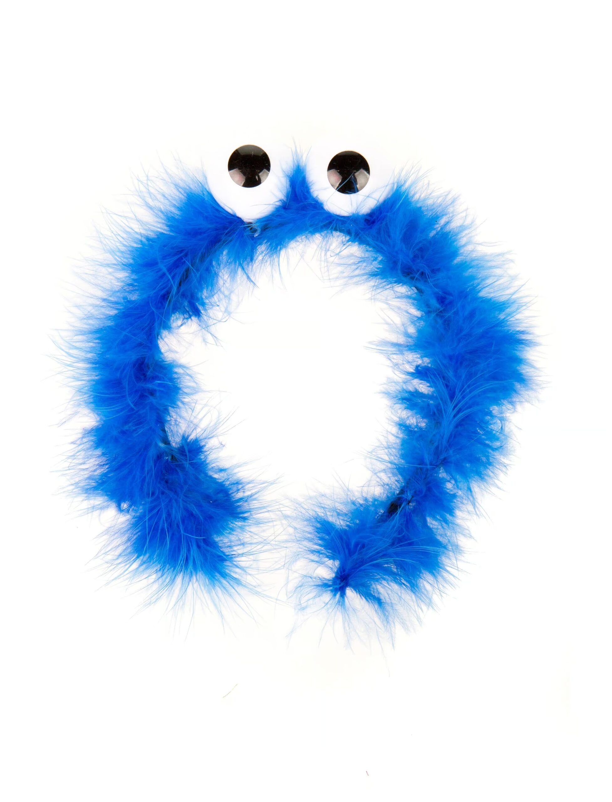 Kekseee! Mit diesem lustigen Haarreif verwandelst Du Dich in Sekundenschnelle in ein keksliebendes Ungetüm! Der Kopfschmuck ist mit blauen Federn und zwei großen, runden Kulleraugen bestückt. Da würde selbst ein Cookie Junkie vor Neid erblassen! Dieser Haarreif passt perfekt zu unserem Krümelchen Kleid oder Latzhose! Sei ein Keksmonster!