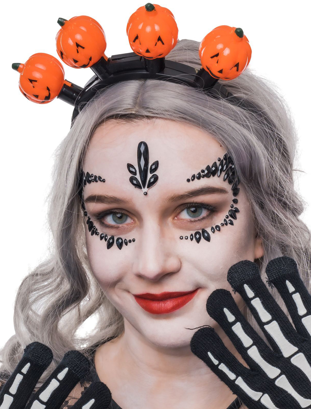 Haarreif LED 4 Kürbisse schwarz/orange, ideal für Karneval & Fasching