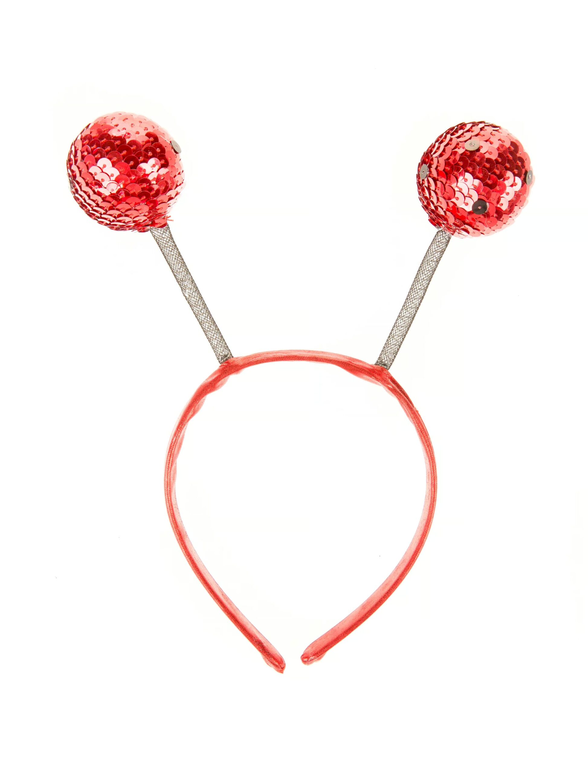 Mit dieser lustigen Kopfbedeckung verwandelst Du Dich in einen besonders prächtigen Marienkäfer! Der stabile Haarreif ist mit federnden Fühlern bestückt, die mit rot funkelnden Pailletten in Diskokugel-Optik verkleidet sind. Die perfekte Ergänzung für Dein Karnevals-Outfit!