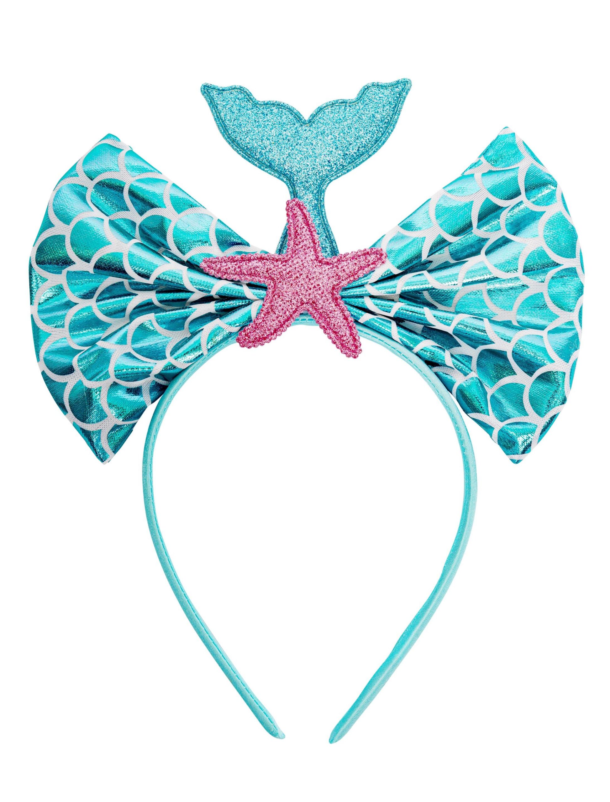 Deine Tochter oder Enkelin mag Meerjungfrauen? Wie wäre es mit diesem süßen Haarreif im Meerjungfrauen Look. Die Schleife hat eine Höhe von 11 cm und eine Breite von 18 cm. Die blaue Schleife hat ein Schuppenmuster. Vorne in der Mitte ist ein Seestern angebracht. Um den Look zu komplettieren, ziert in der Mitte eine Flosse. Fehlt nur noch ein süßes Meerjungfrauen oder Nixen Kostüm zu Karneval!