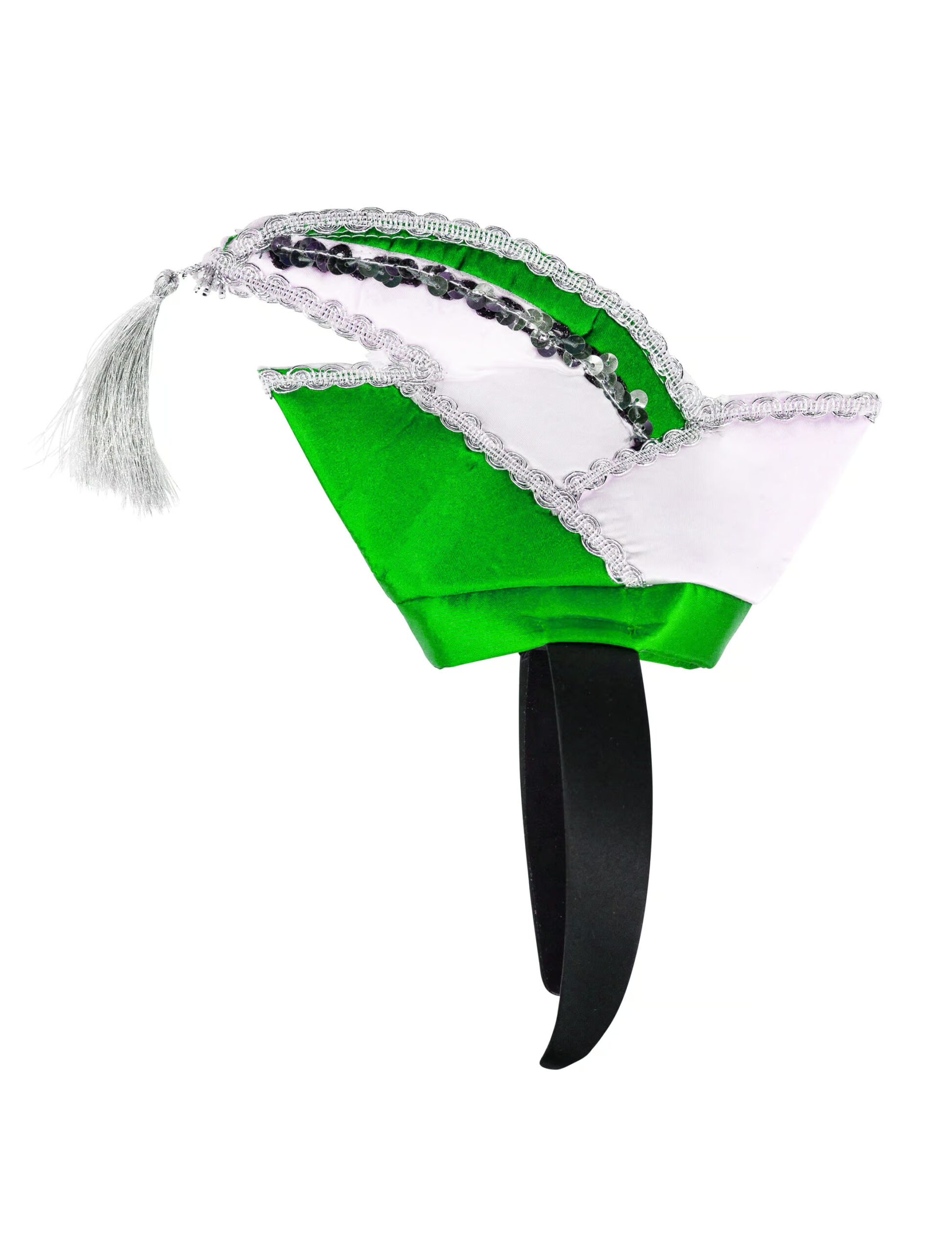 Mit unserem attraktiven Haarreif mit der auffälligen, grün-weißen Mini Komiteemütze kannst Du nicht nur Deine schicken ElferratsKostüme perfekt ergänzen, sondern machst auch zum Straßenfasching, Maskenball oder auf Karnevals-Sitzungen eine gute Figur. Das hübsche KostümZubehör mit der eleganten, grün-weißen Komiteemütze, die mit glitzernden Pailletten, silberner Litze und einer silbernen Quaste beeindruckt ist ein charmanter Eye-Catcher, den Du in der Karnevalszeit, als närrischen Gag auch schon mal im Job oder im Alltag tragen kannst.