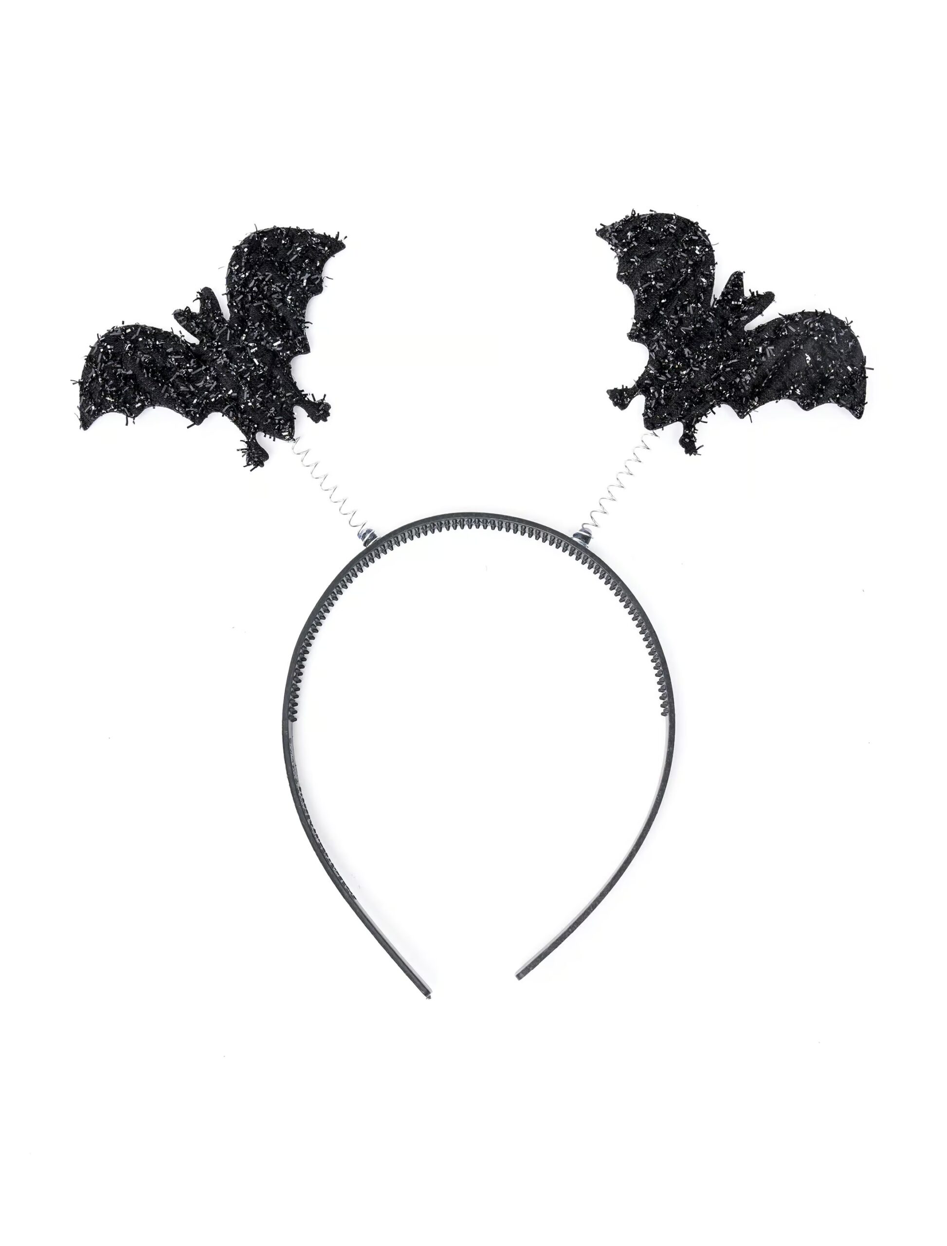 Du bist auf der Suche nach einem ausgefallenen Kopfschmuck für die nächste Halloween Party? Dann bestelle jetzt unseren schicken Haarreif, der mit zwei süßen Fledermäusen geschmückt ist. Dank den angebrachten Metallfedern schwingen die Fledermäuse locker beim Laufen und Tanzen mit. Auch für Karneval ist der Haarreif bestens geeignet und eignet sich gut als Ergänzung für ein gruseliges Outfit beim Feiern.