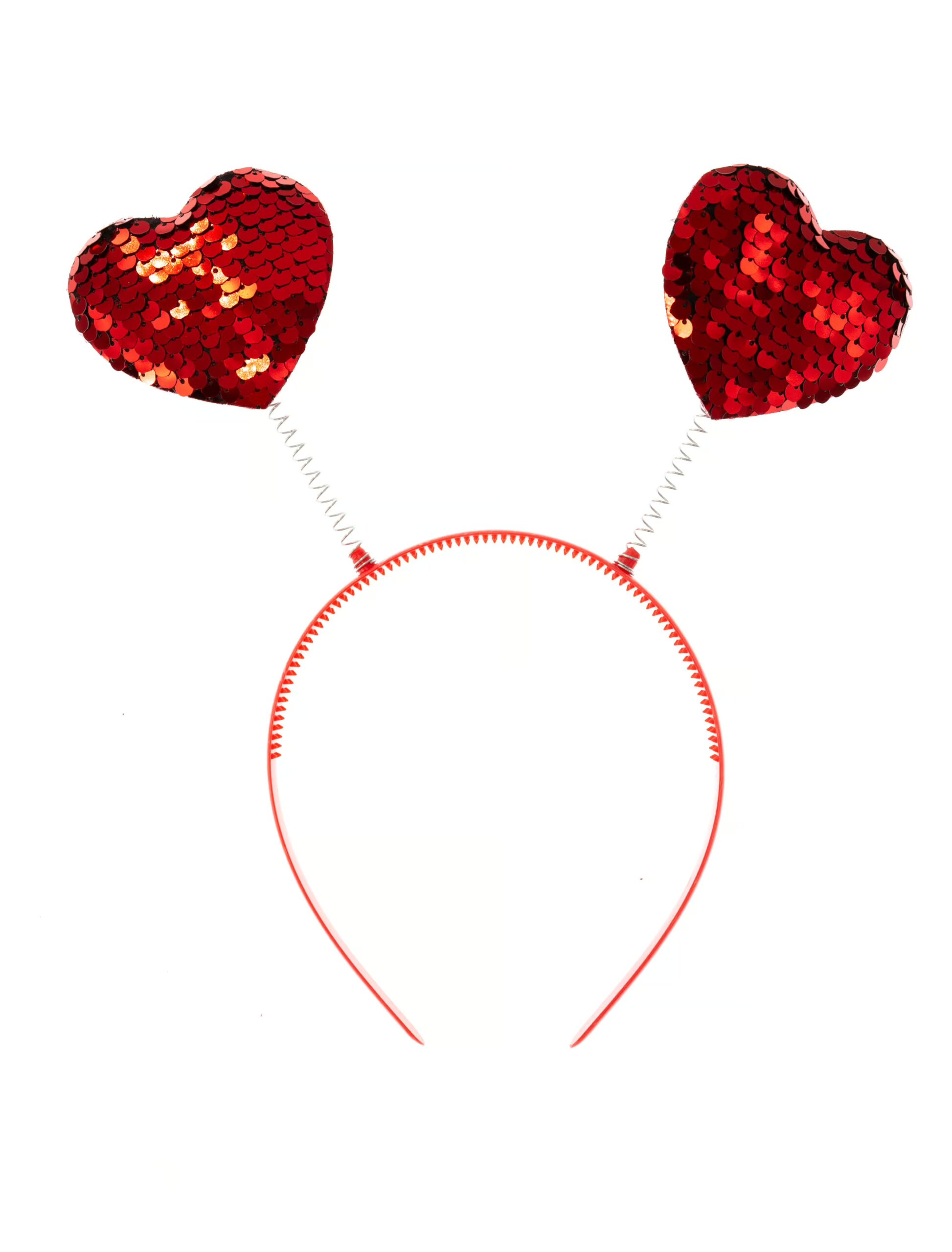 Kostümzubehör Haarreif mit 2 Paillettenherzen Damen rot