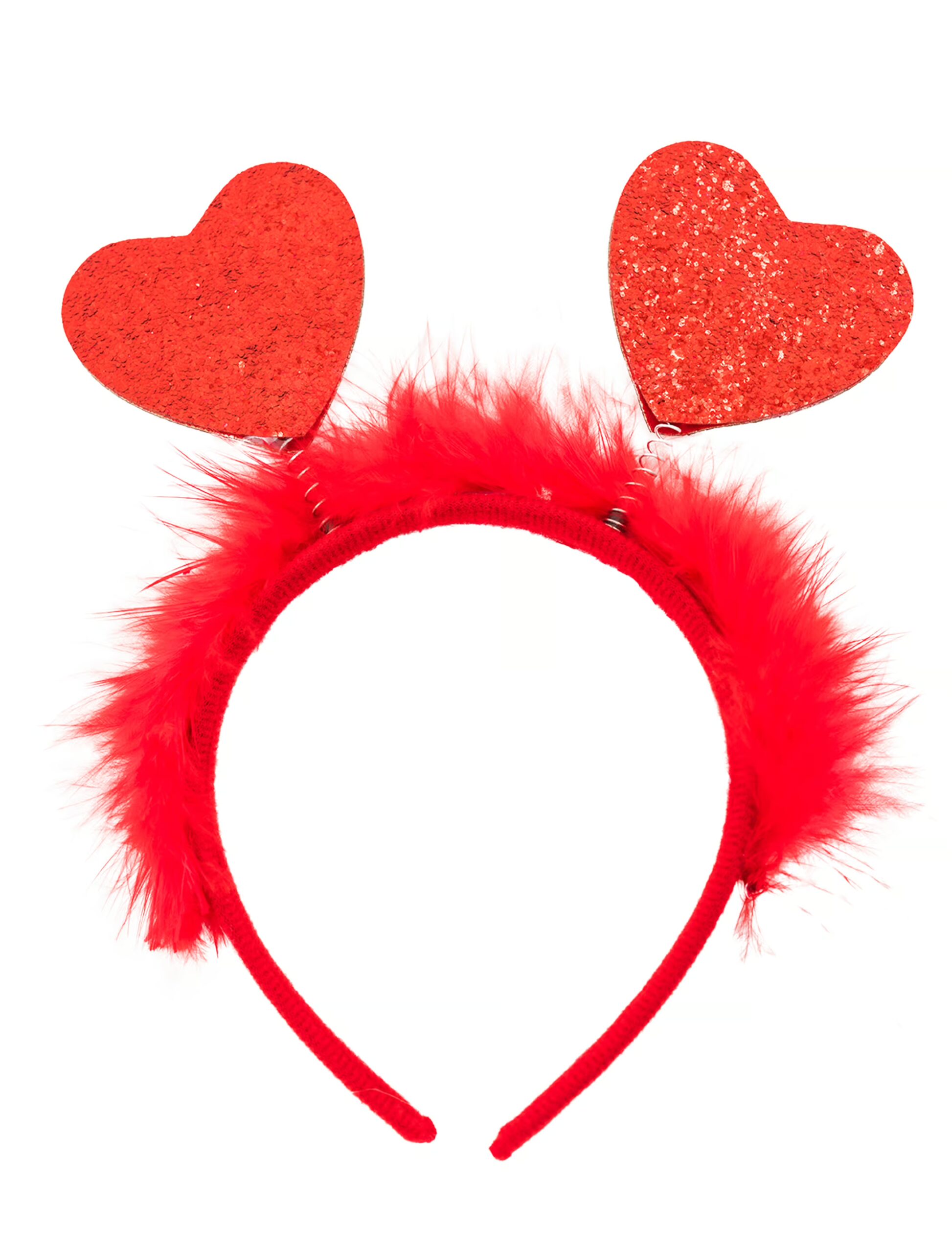 Kostümzubehör Haarreif mit Herzen und Marabu rot