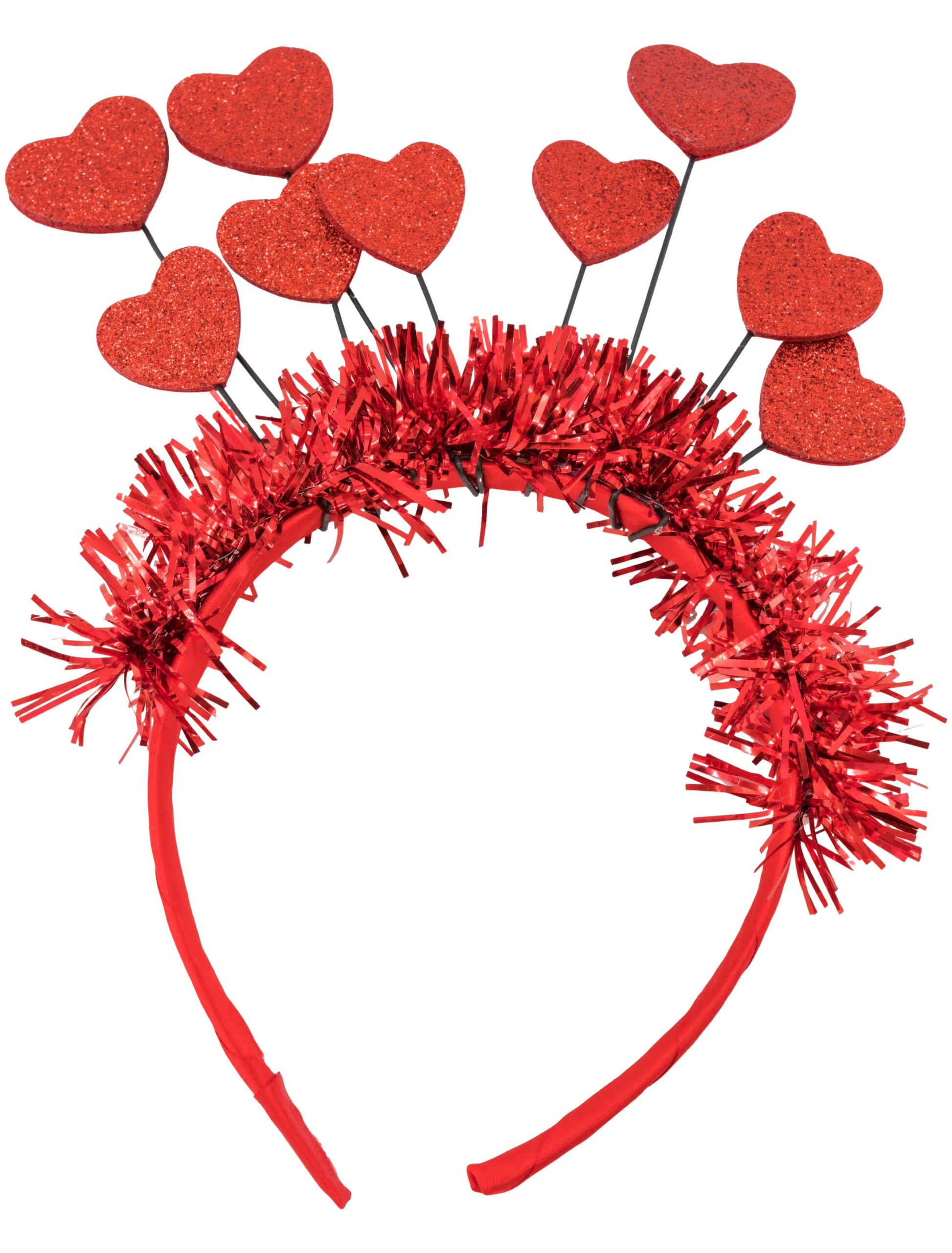 Haarreif mit Lametta und Herzen rot, ideal für Karneval & Fasching