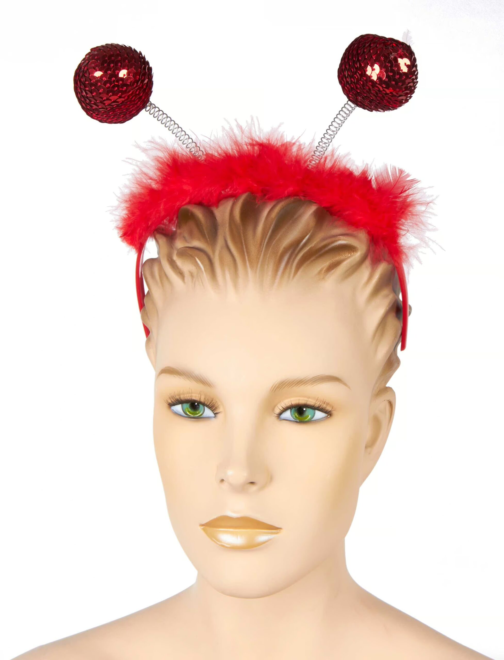 “Spieglein, Spieglein an der Wand, wer hat die schönsten Fühler im ganzen Land?” Mit diesen roten Glitzerkugeln bist Du auf jeden Fall ganz vorne dabei und bringst die Party zum Schwingen. Die Fühler stehen etwa 11 cm von Deinem Kopf ab und haben ein Größe von ca. 4 cm. Der Kopfschmuck passt wunderbar zu einem Marienkäfer-Kostüm an Karneval und Fasching.