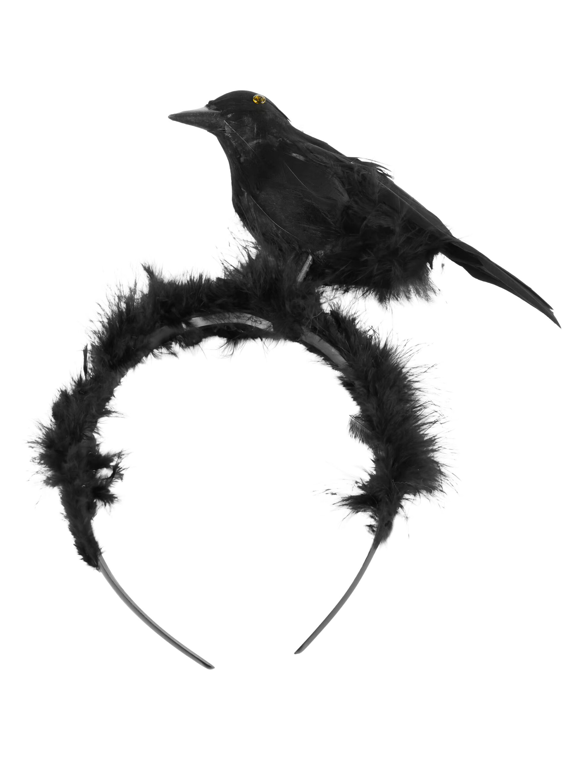 Mit diesem faszinierenden Kopfschmuck hast Du stets einen treuen und intelligenten Begleiter an Deiner Seite. Oder besser auf dem Kopf. Denn an dem gefiederten Haarreif ist ein Rabe/Krähe befestigt, der garantiert alle Blicke auf sich zieht. Der mystische, pechschwarze Vogel ist weltweit als Hüter der Magie bekannt und fühlt sich deshalb auf dem Haupt von Hexen, dunklen Magiern und anderen finsteren Gestalten besonders wohl. Die perfekte Ergänzung für Dein Halloween-Outfit!