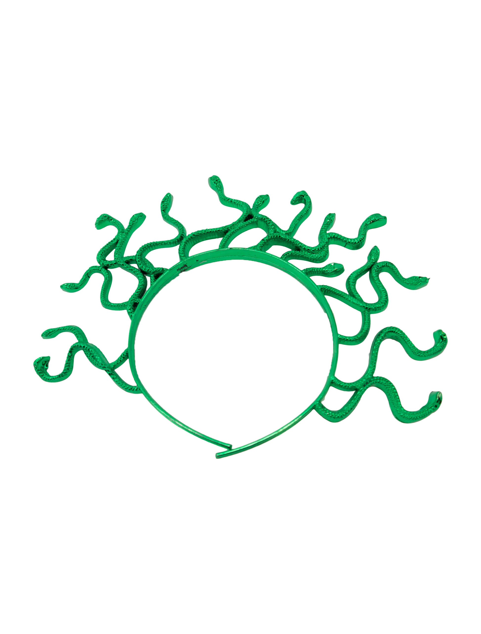 Dieser auffällige Haarreif ist mit detailreich gestalteten, sich windenden Schlangen versehen, deren schimmerndes Schuppenmuster für eine täuschend echte und zugleich mystische Optik sorgt. Die geschwungenen Formen der Schlangen verleihen dem Accessoire eine dynamische Ausstrahlung, die sofort ins Auge fällt. Perfekt, um einem Medusa-, Fantasy- oder Halloween-Kostüm den letzten Schliff zu geben und garantiert ein Blickfang auf jeder Party oder Mottoveranstaltung.