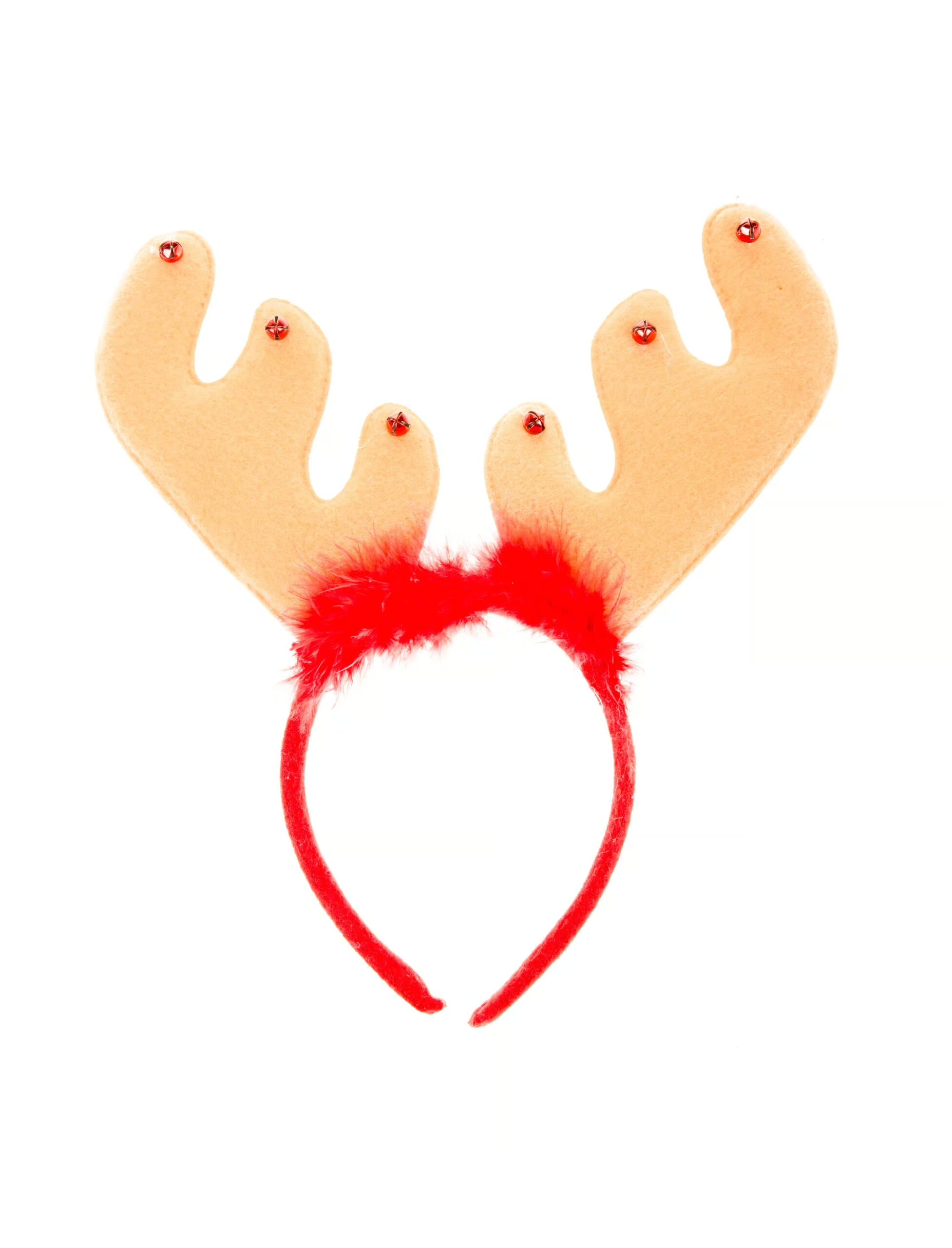 Diese lustige Kopfbedeckung ist genau die richtige Ergänzung für Dein Rentier-Outfit! Der stabile Haarreif ist mit einem mächtigen Geweih, kleinen Glöckchen und flauschigen Marabufedern bestückt. Perfekt für Karneval, Weihnachten oder die nächste Après-Ski-Party!