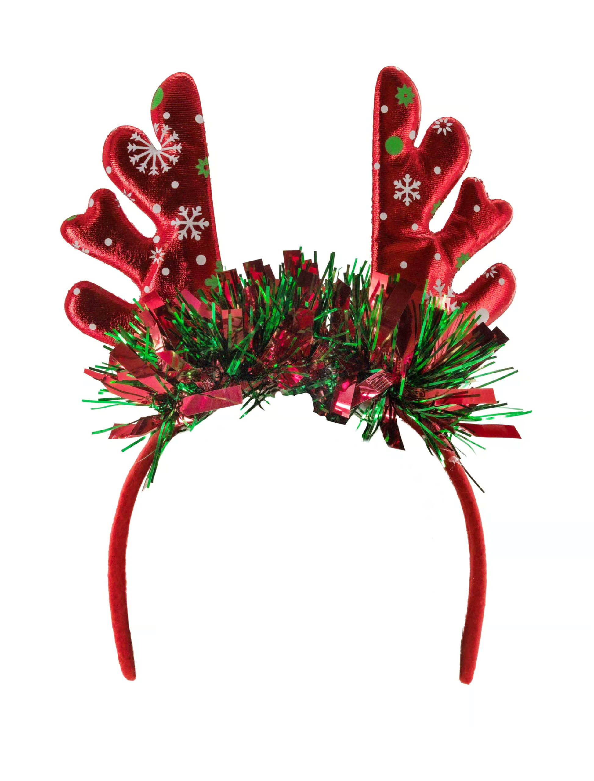 Unser Haarreif Rentiergeweih mit Lametta ist das perfekte Accessoire für alle, die an Weihnachten nicht nur glänzen, sondern gleich funkeln wollen. Auf dem Haarreif thront ein großes Rentiergeweih in metallischer Optik, das mit verschiedenen weihnachtlichen Dekoelementen verziert ist. Vor dem Geweih ist glitzerndes Lametta angebracht, das den oberen Teil des Haarreifs schmückt und für noch mehr festliche Stimmung sorgt. Ob Weihnachtsfeier, Karneval oder Adventsparty – mit unserem Lametta Rentiergeweih bist du garantiert das strahlendste Highlight im Raum!