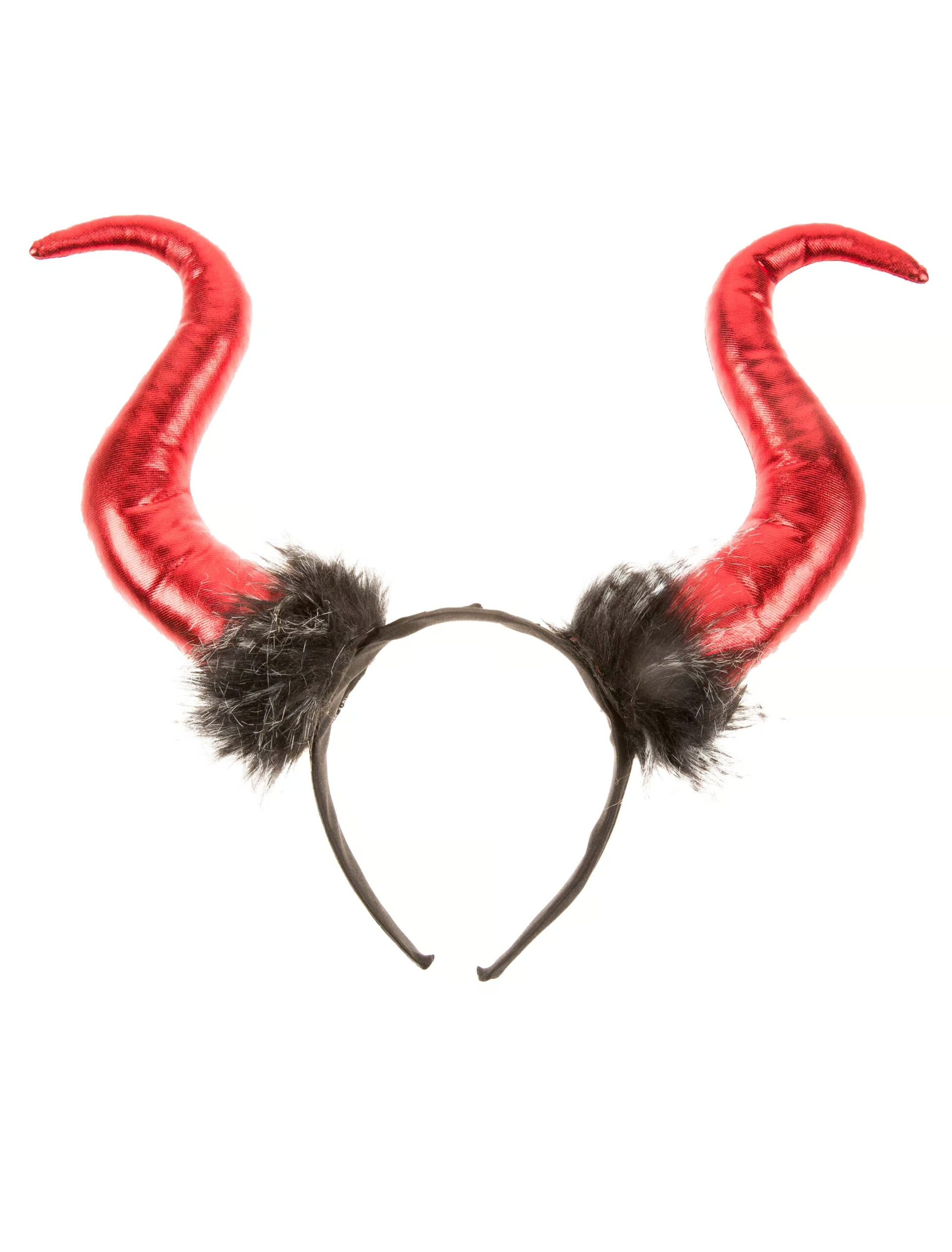 Satanisches KostümZubehör mit Kuschelfaktor! Der rote Haarreif Teufel überzeugt mit seinen langen gewundenen Hörnern und dem schwarzen Kunstfell – das ideale Accessoire für alle, die an Halloween und Karneval auch als Höllenfürst auf Schmusekurs gehen möchten. Jetzt bei uns im Online-Shop bestellen und teuflisch gut aussehen!