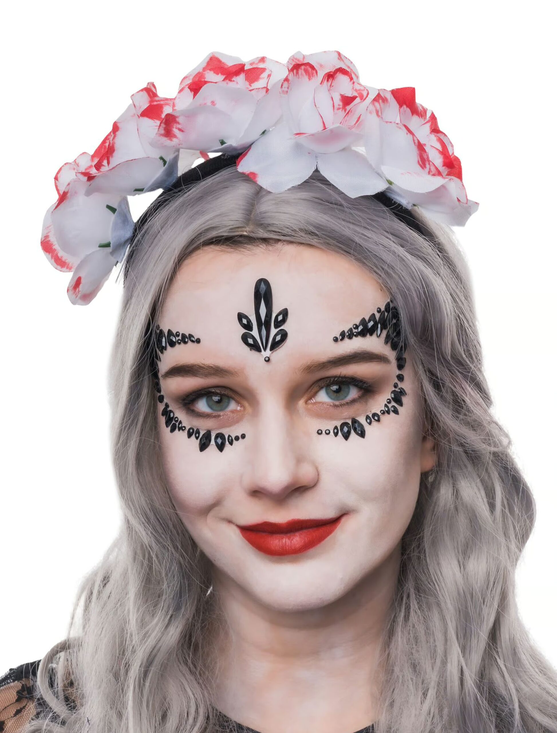 Kostümzubehör Haarreif weiße Rosen mit Blutspritzern