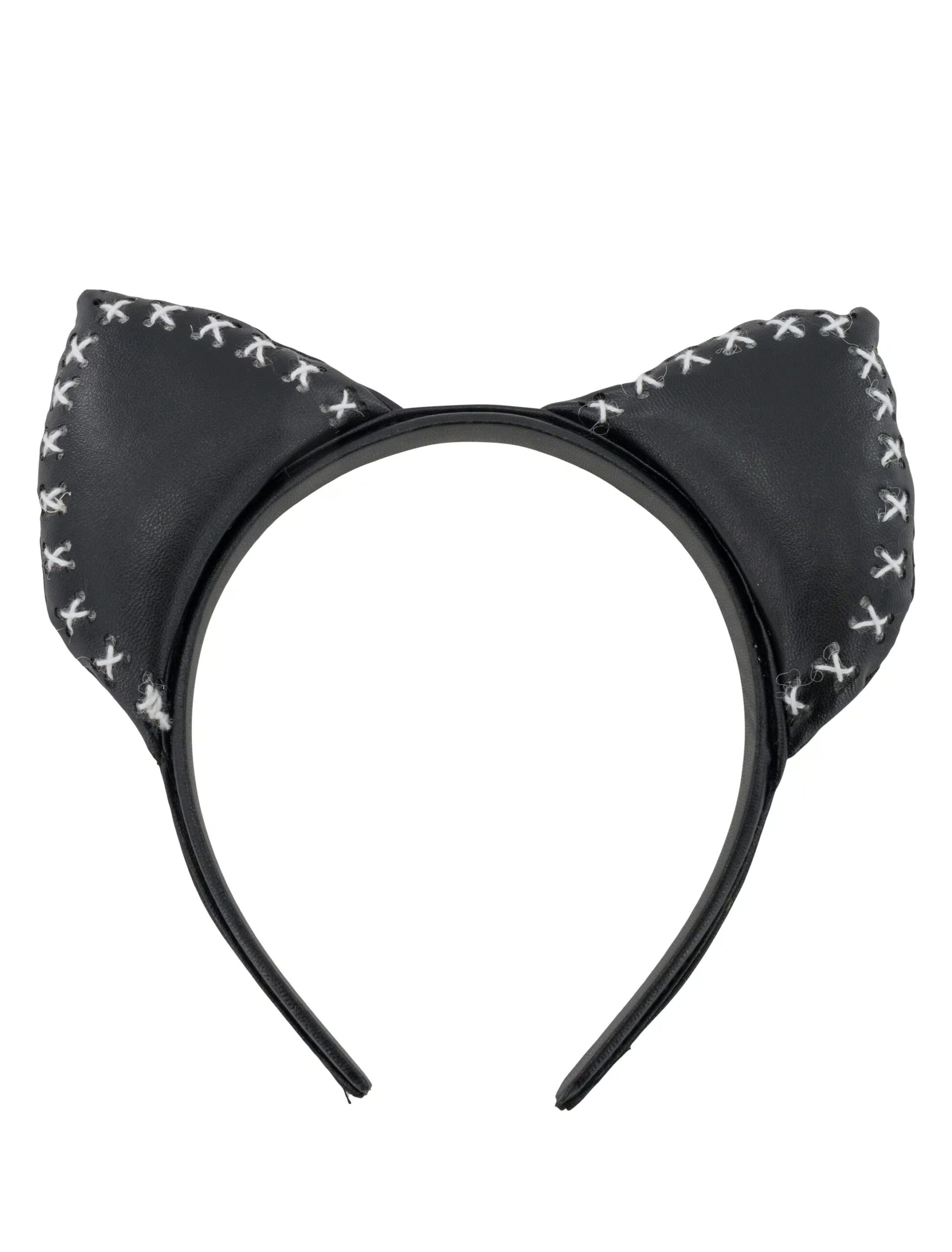 Kostümzubehör Haarreifen Katzenohren Lederoptik schwarz