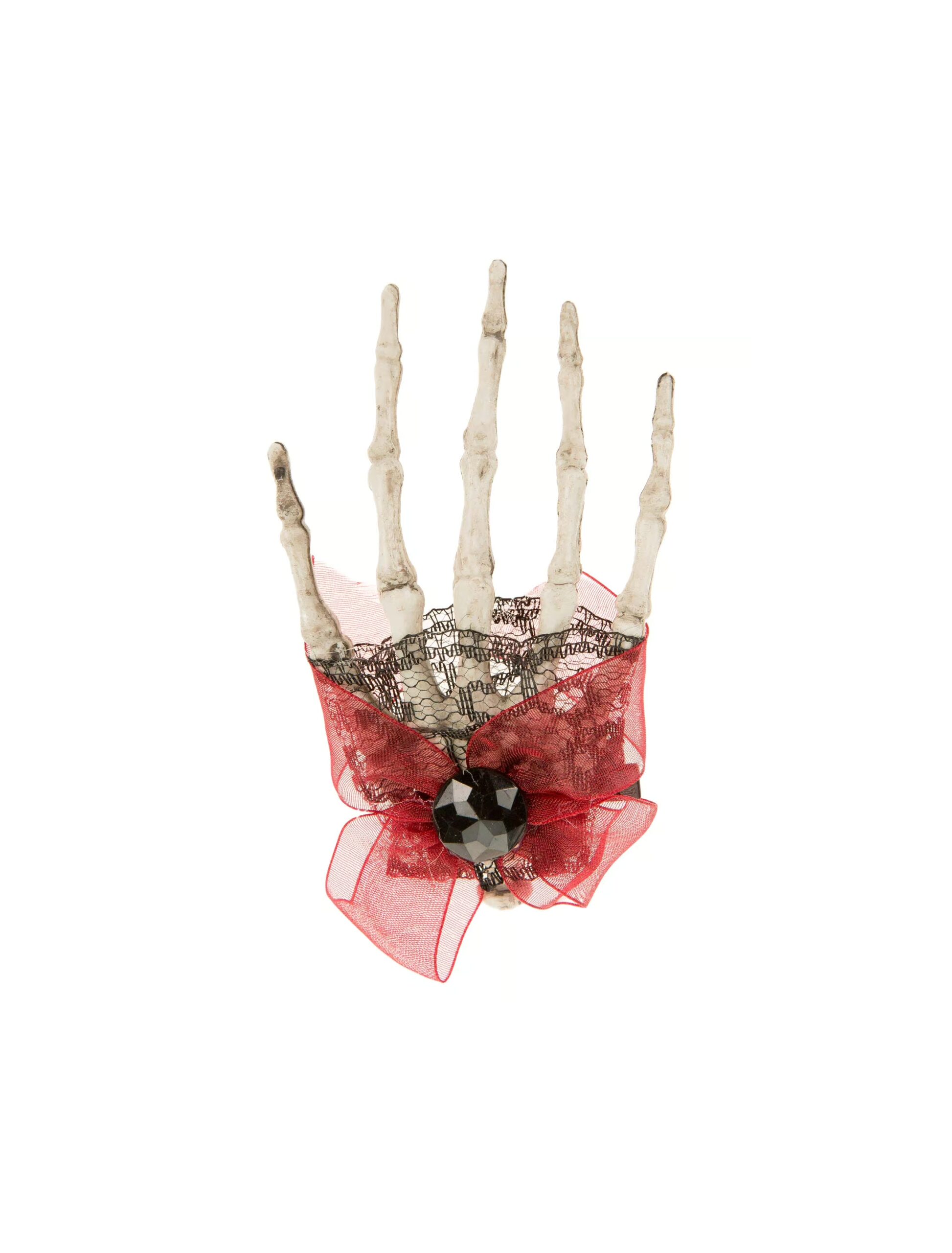 Kostümzubehör Haarspange Skeletthand mit Spitze Farbe: schwarz/rot