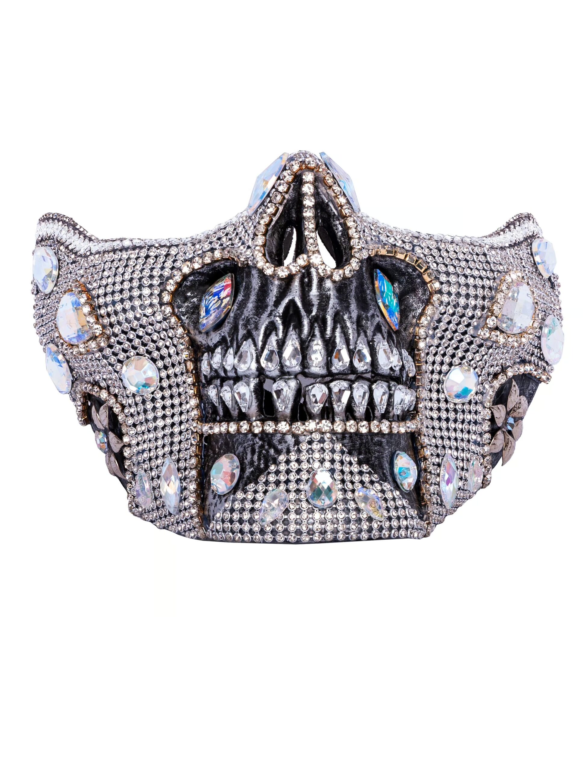 Kostümzubehör Halbmaske Skelettmund silber mit Kristallen