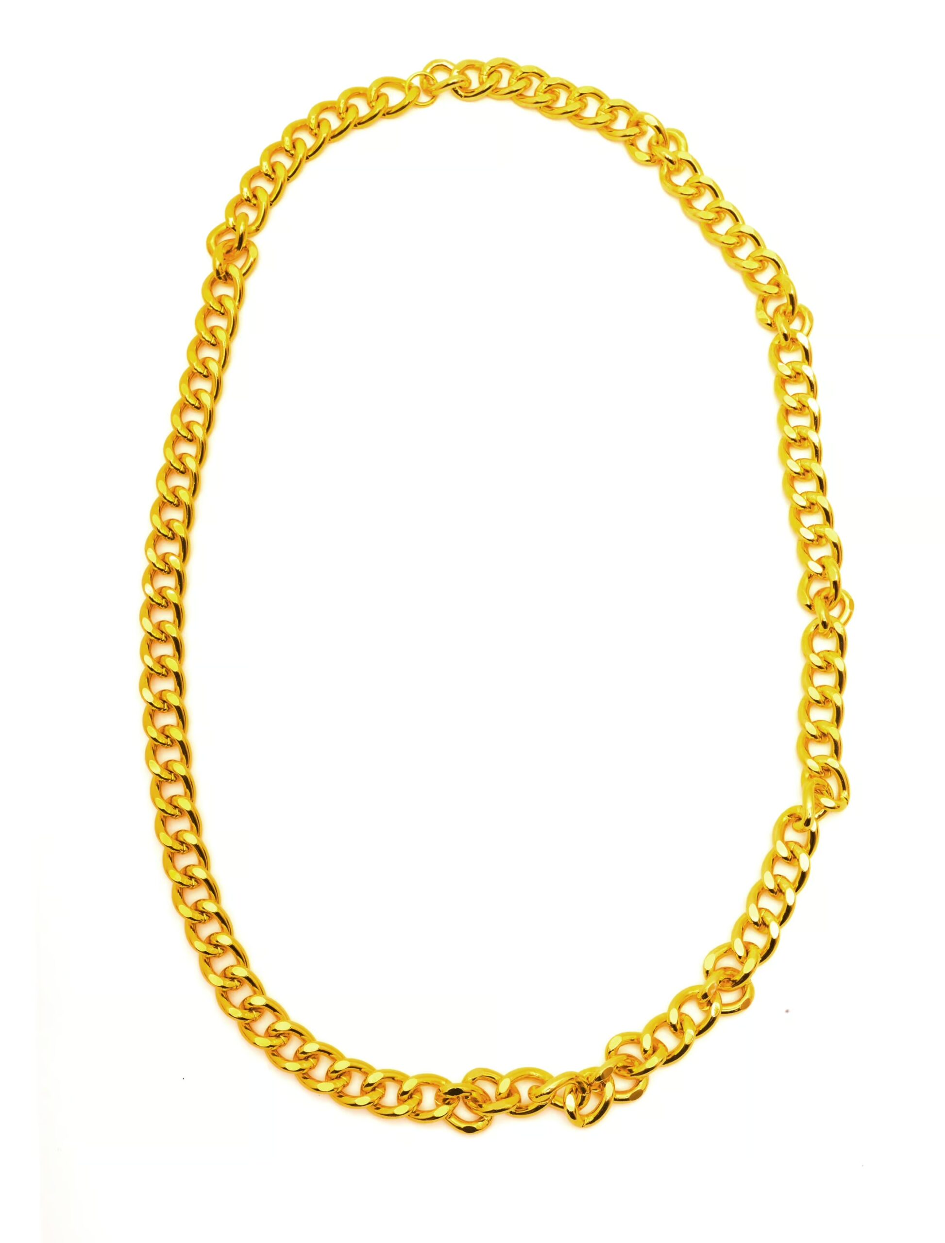 Ein goldener Hingucker! Die knapp 1 Meter lange Halskette mit den grobmaschigen Gliedern rückt jedes Kostüm und Outfit in den Vordergrund. Die goldfarbene Kette aus pflegeleichtem Metall passt perfekt zu Disco-, Rapper- oder Gangster-Kostümen und lässt sich durch ihre Länge auch doppelt um den Hals tragen.