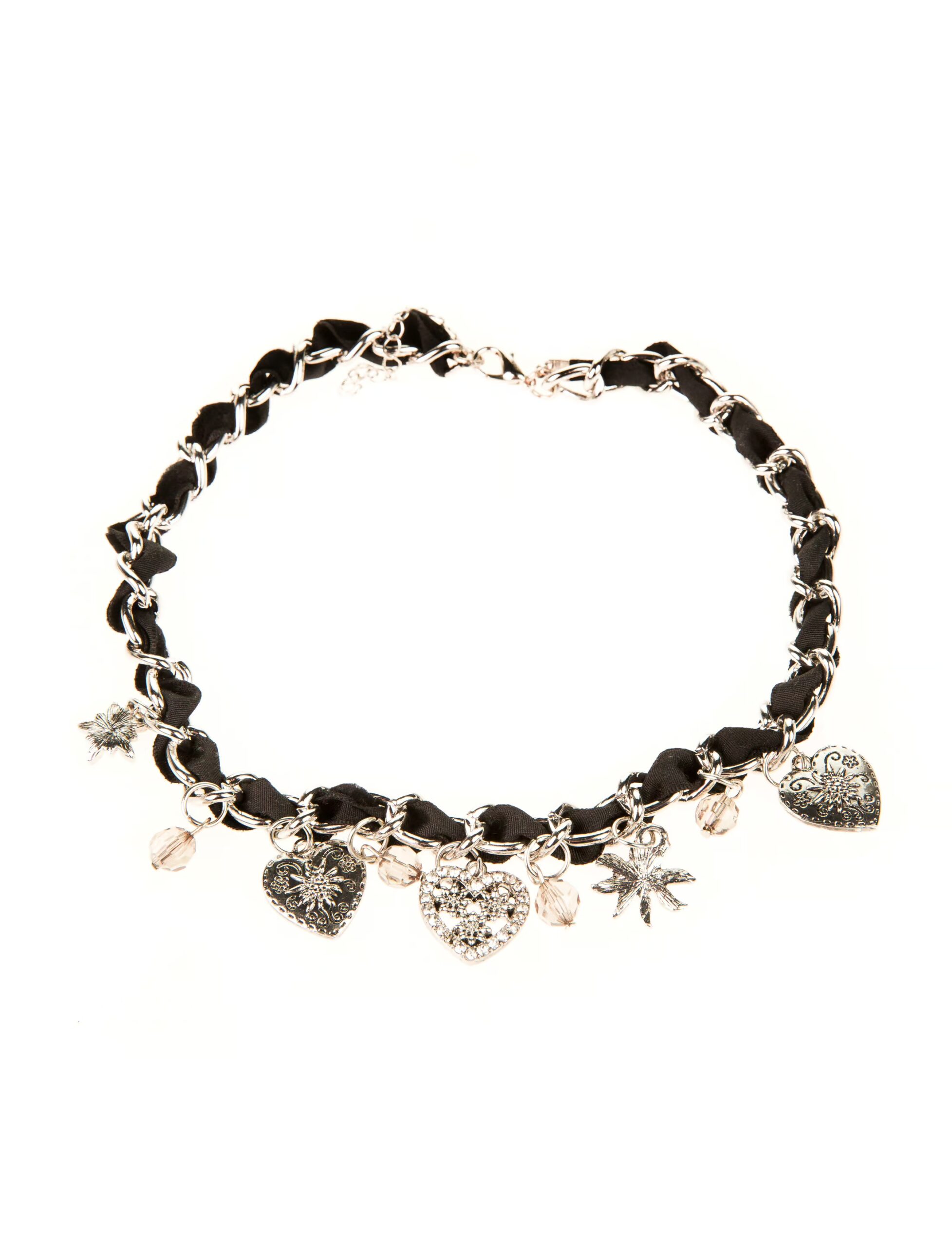 Diese entzückende Halskette ist eine besonders hübsche Ergänzung für Dein Volksfest-Outfit! Die schwarze Samt-Kette ist mit kleinen Herz- und wundervollen Edelweiß-Anhängern verziert. Ein echter Hingucker – nicht nur in Bayern! Das passende Armband findest Du übrigens auch in unserem Shop!