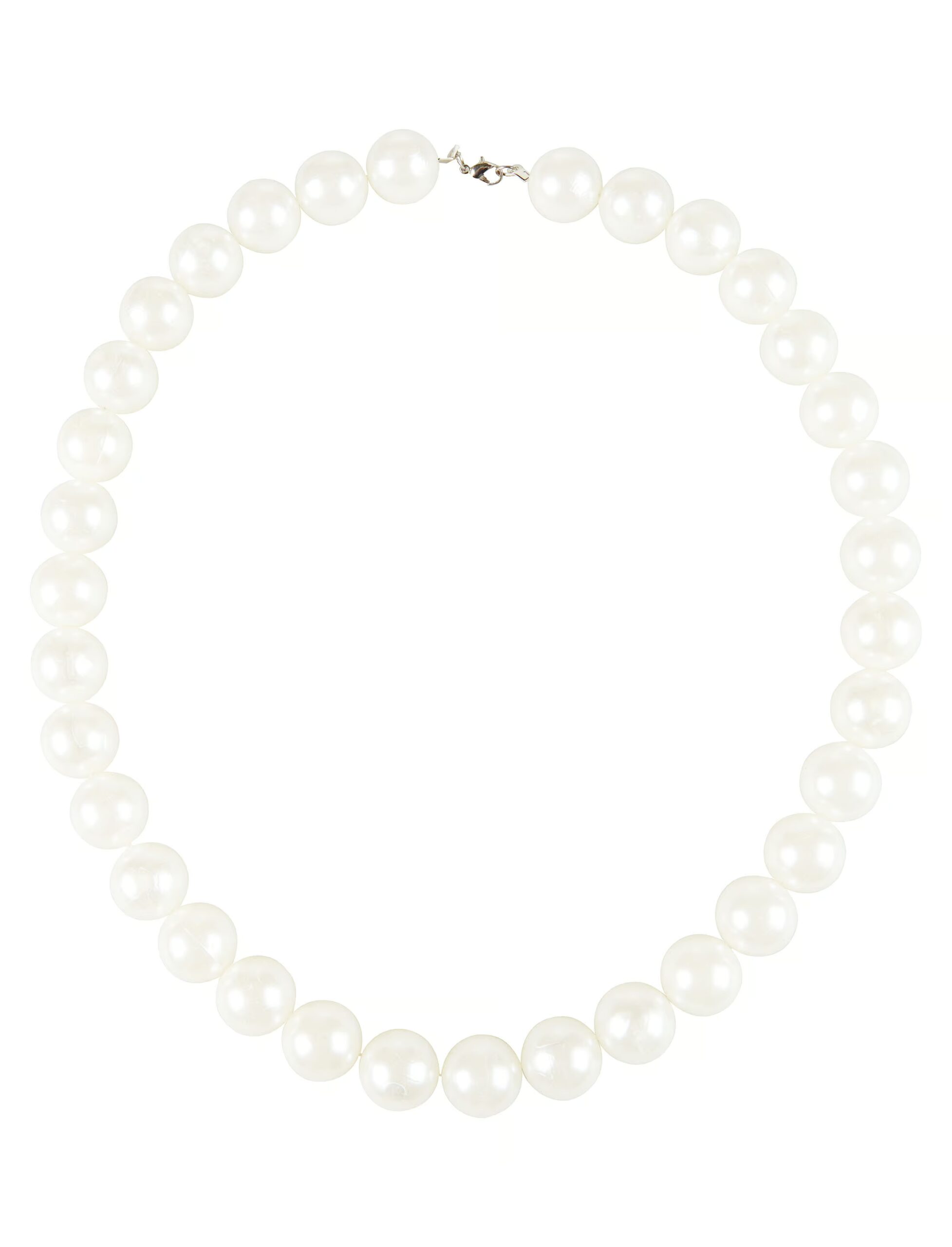 Je größer die Perlen, desto auffälliger das Outfit. Diese Perlenkette ist ein klares Statement: Du bist selbstbewusst und weißt, was Du willst. Die ca. 60 cm lange Kette mit den großen, weißen Perlen lässt sich durch einen Haken schließen. Perfekter Modeschmuck zu 50er-Jahre- oder Rockabilly-Kostümen.
