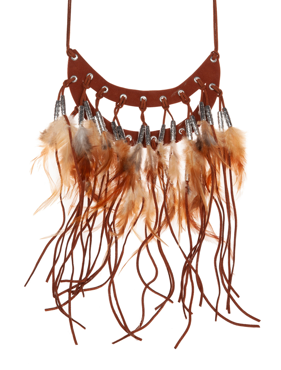 Halskette Indianer braun mit Federn, ideal für Karneval & Fasching