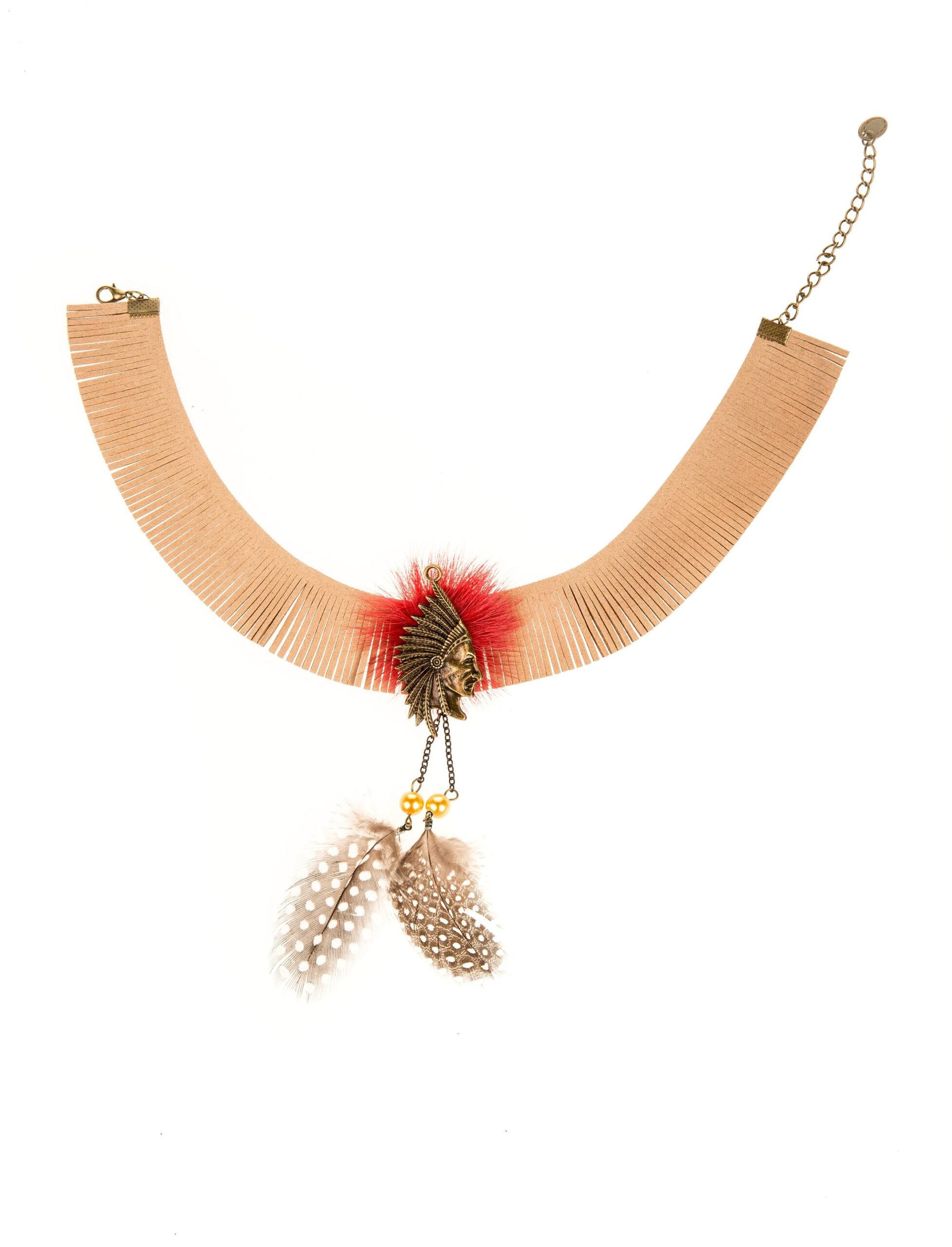 Kostümzubehör Halskette Indianer mit Federn Farbe: braun