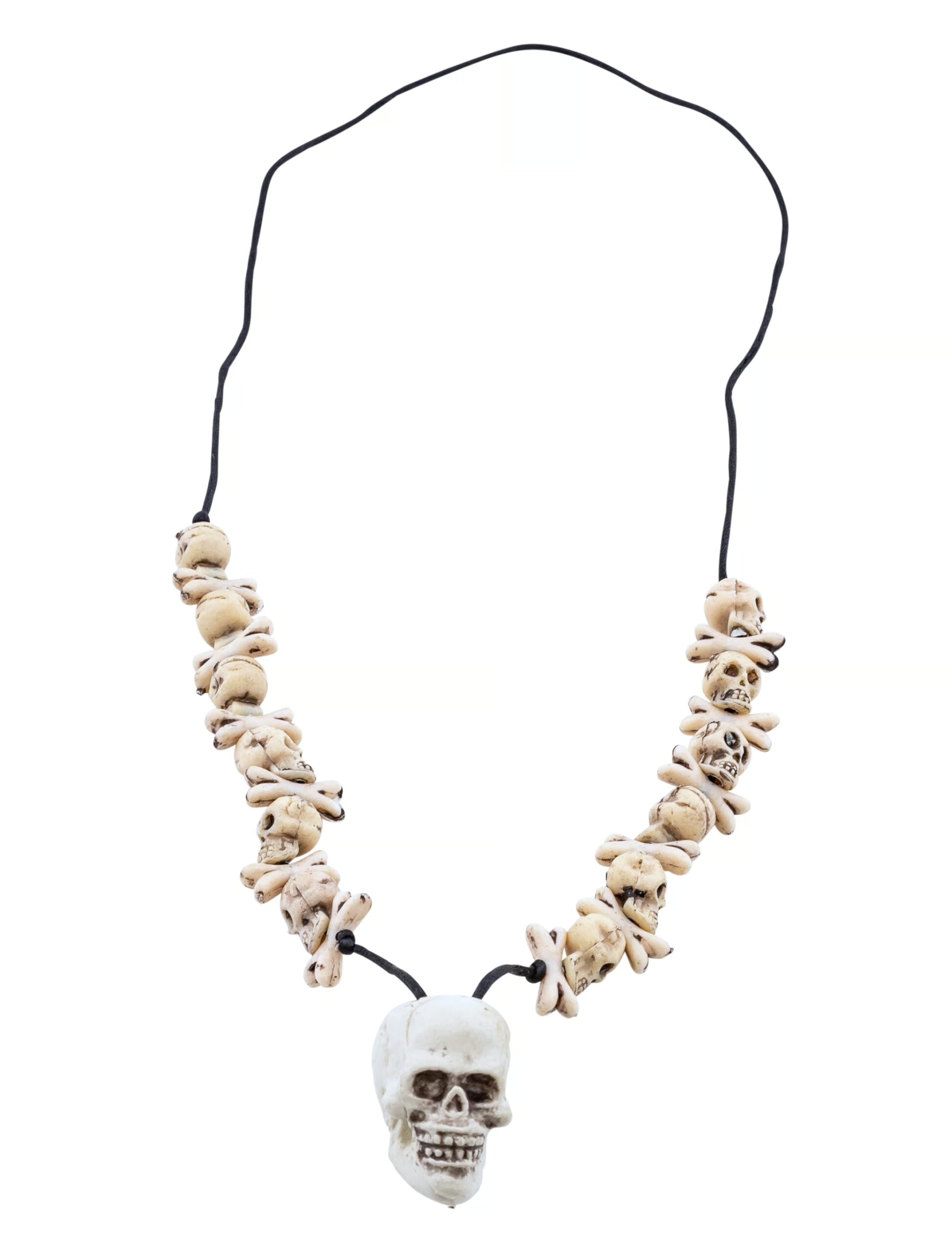 Kostümzubehör Halskette Kordel mit Schädel Farbe: weiß