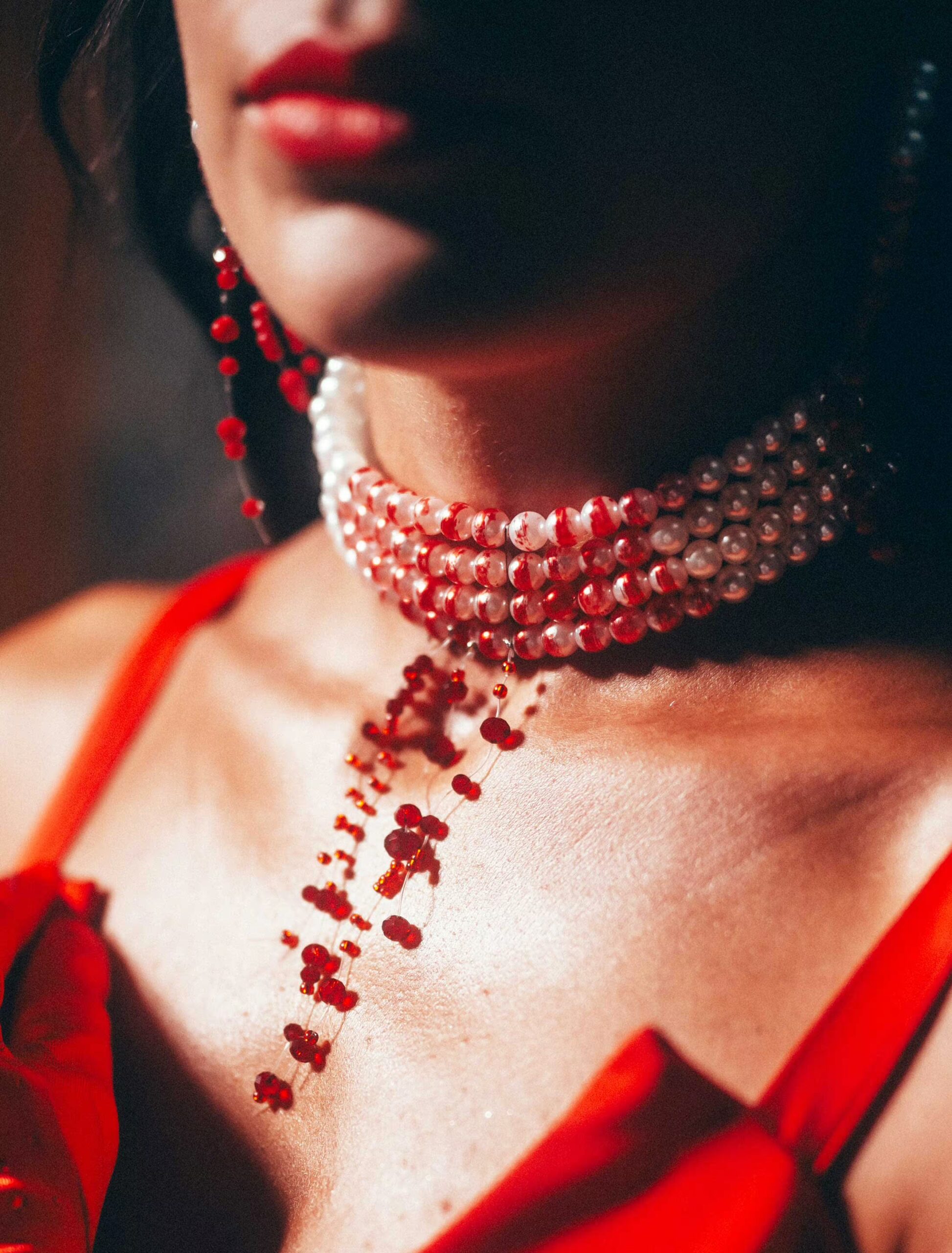 Halskette Perlen blutig weiß/rot, ideal für Karneval & Fasching