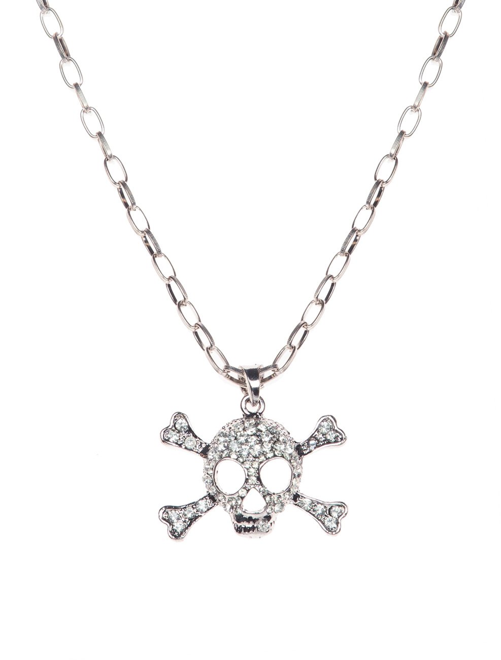 Kostümzubehör Halskette Schädel mit Steinen Farbe: silber