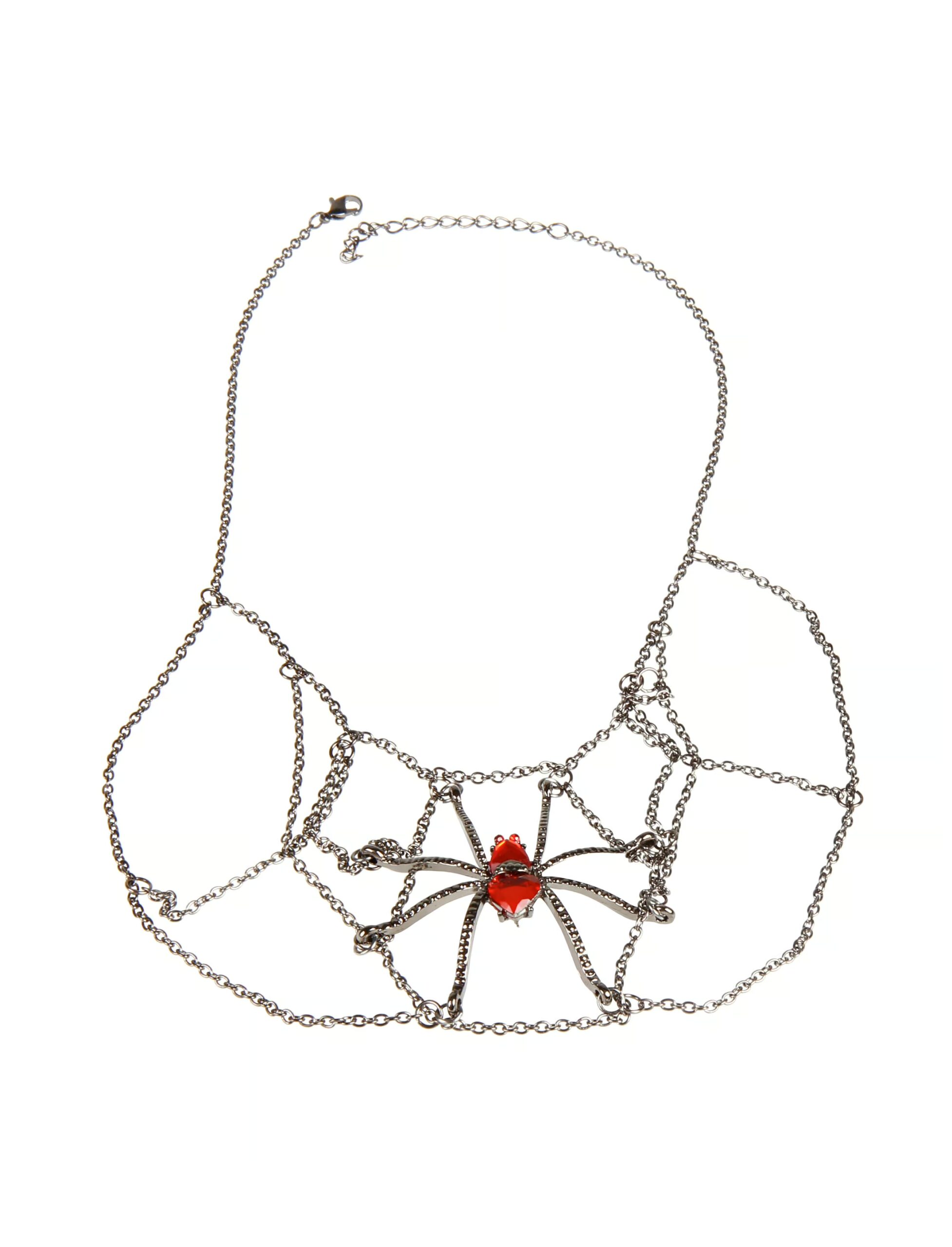 Kostümzubehör Halskette Spinne mit rotem Stein