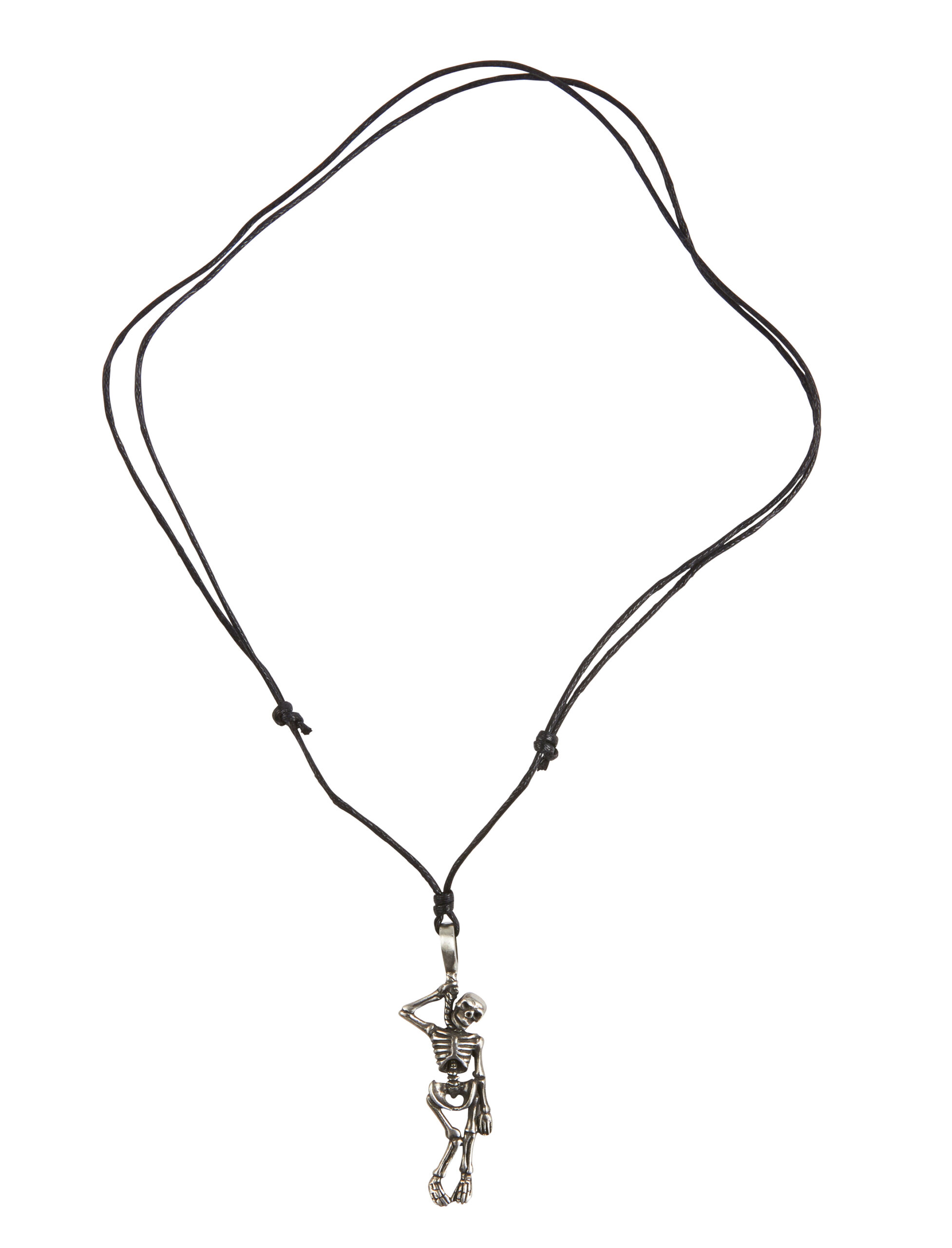 Nichts für schwache Nerven! Beim genauen Hinsehen stellen sich beim Anblick des silberfarbenen Anhängers, der ein erhängtes Skelett zeigt, die Nackenhaare auf. Abgerundet wird das gruselige Accessoire durch ein schlichtes Kunstlederband, das größenverstellbar ist. Ein Must-Have für alle Halloweenfans!