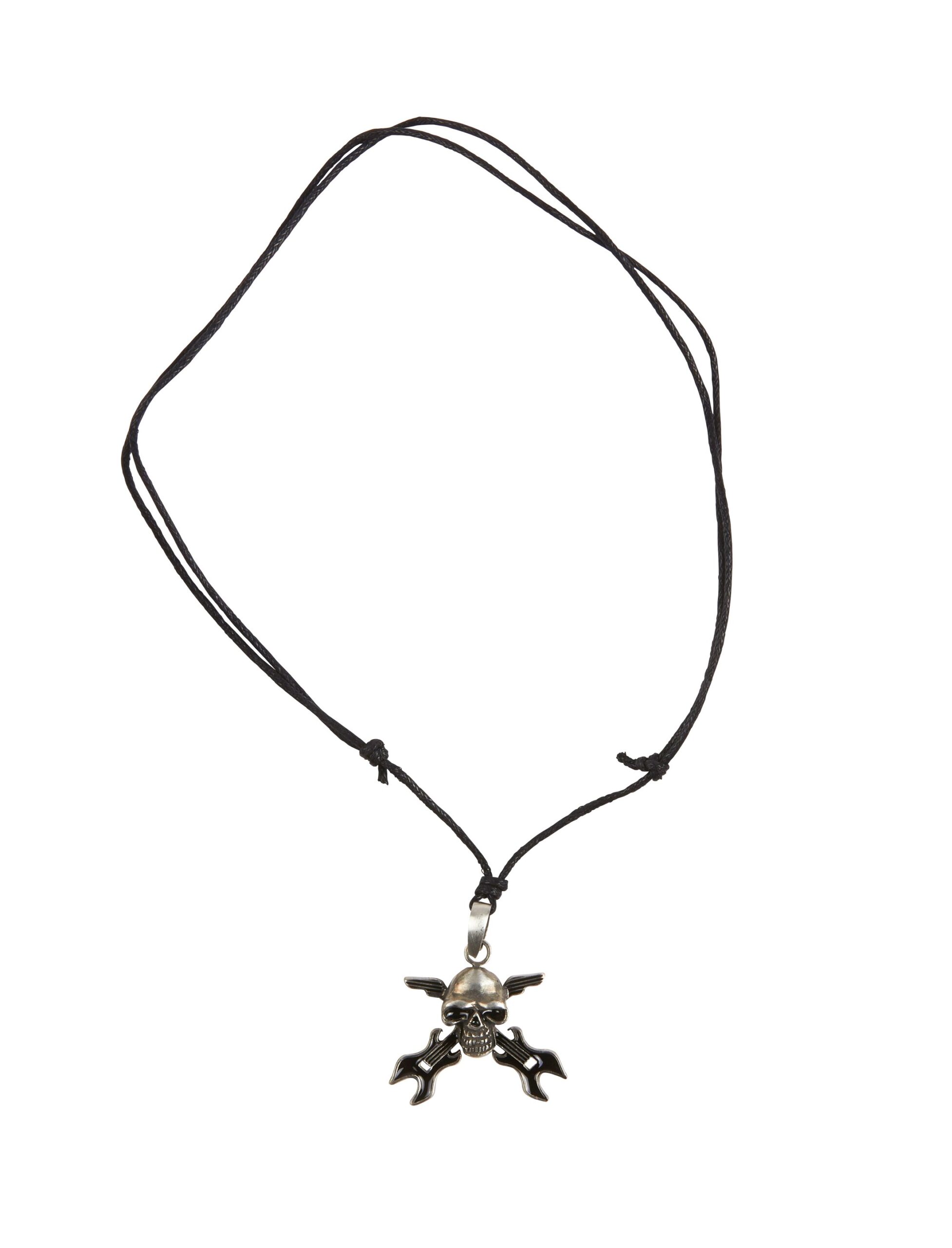 Durch Deine Adern fließt Rock ‘n’ Roll? Dann ist diese Kette das perfekte Symbol dafür. Der silberne Totenkopf wird von zwei Gitarren umgeben, die jedes Rockerherz höher schlagen lassen. Die Länge des Kunstlederbands, an dem der Anhänger befestigt ist, lässt sich individuell verstellen. Ready to rock? Das perfekte Kostüm Accessoire für die nächste Halloween-, Faschings- oder Karnevalsparty.