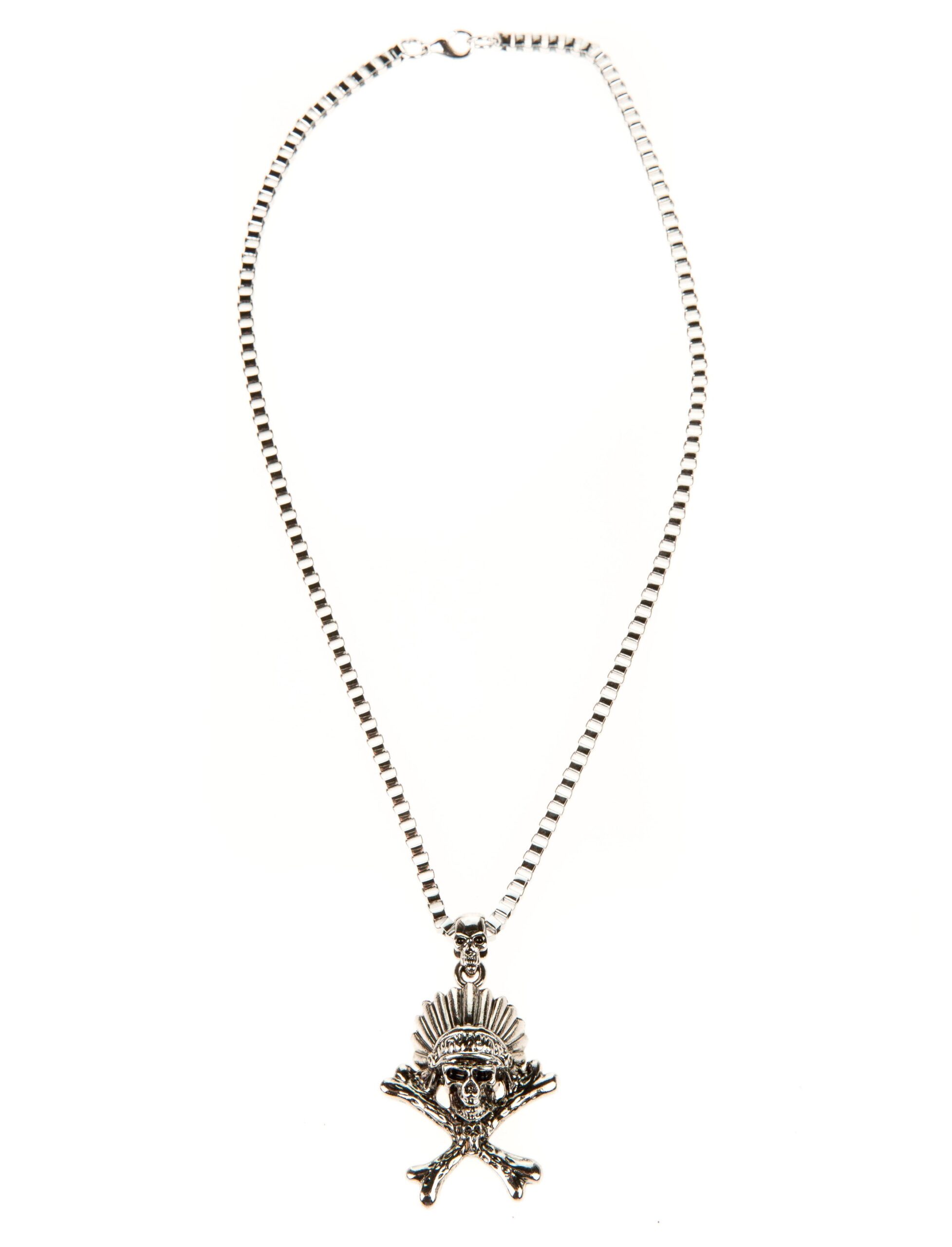 Kostümzubehör Halskette Totenkopf Häuptling Farbe: silber