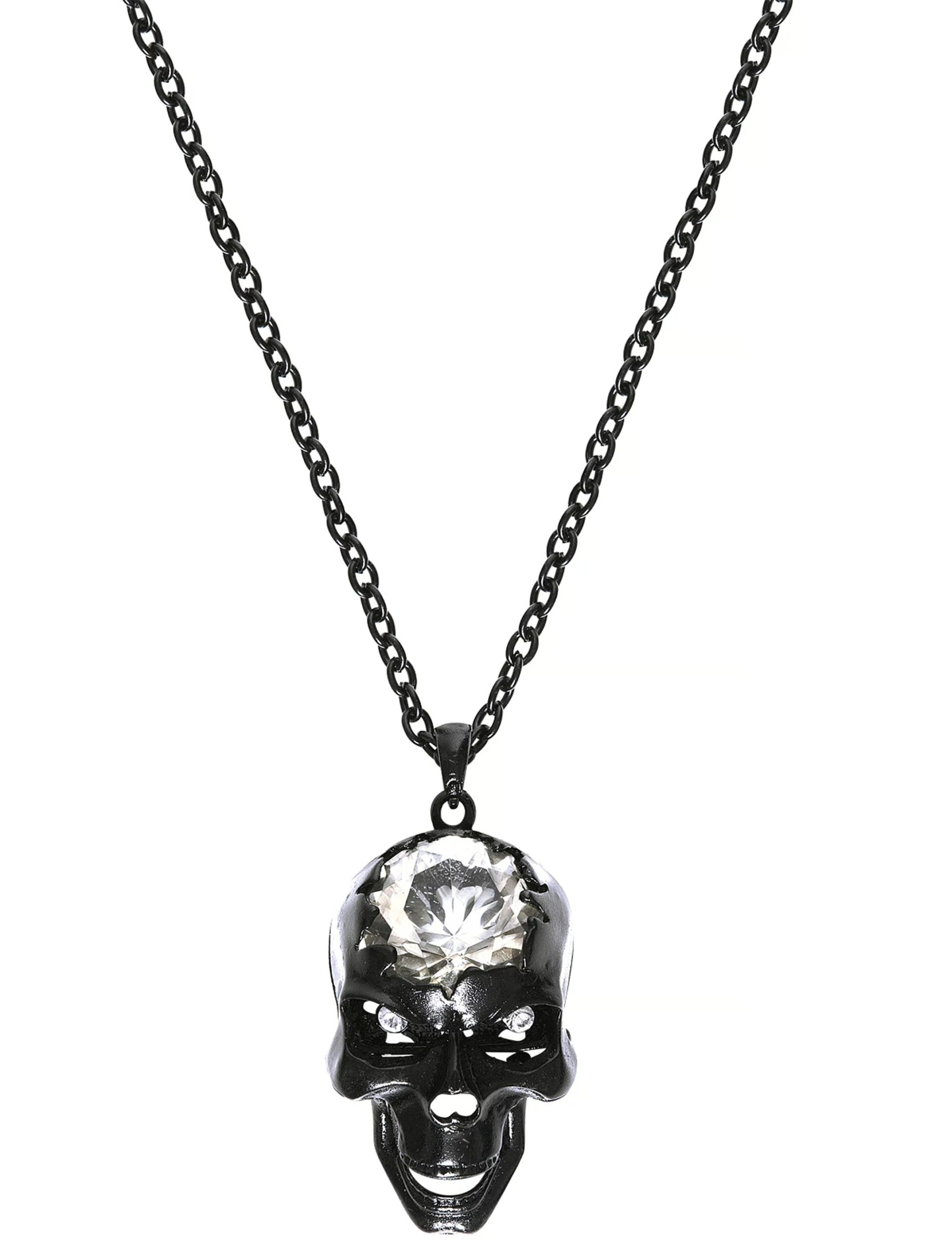 Kostümzubehör Halskette Totenkopf m. Kristall Farbe: schwarz