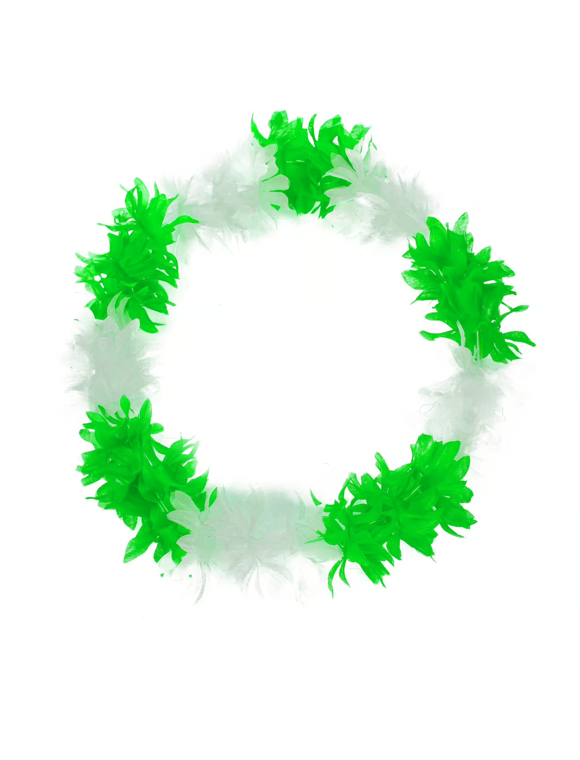 Aloha Sonnenliebhaber! Mit dieser grünen Hawaiikette deluxe zaubert Du aus jedem noch so schnöden Alltagsgrau eine sonnig warme Strandkulisse. Ein bunter Blickfang, auch für Basic-Outfits! Denn mit diesem Accessoire verwandelst Du im Nu jeden Alltagslook in ein buntes Blütenmeer. Besonders schön kommt die Hawaiikette, auf Hawaii auch Lei genannt, in fröhlichem Grün und Weiß, wenn Du sie mit einem Hula-Rock in passender Farbe kombinierst. Mit bunten Accessoires und Komplementärfarben wirst Du zu dem Hingucker und Sonnenschein auf jeder Kostümparty. Schnapp Dir eine Kokosnuss und genieße das einmalige Hawaiifeeling!