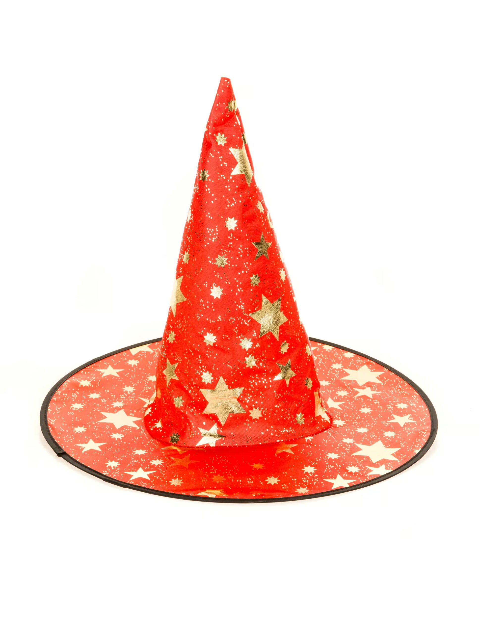 Kostümzubehör Hexenhut mit goldenen Sternen rot
