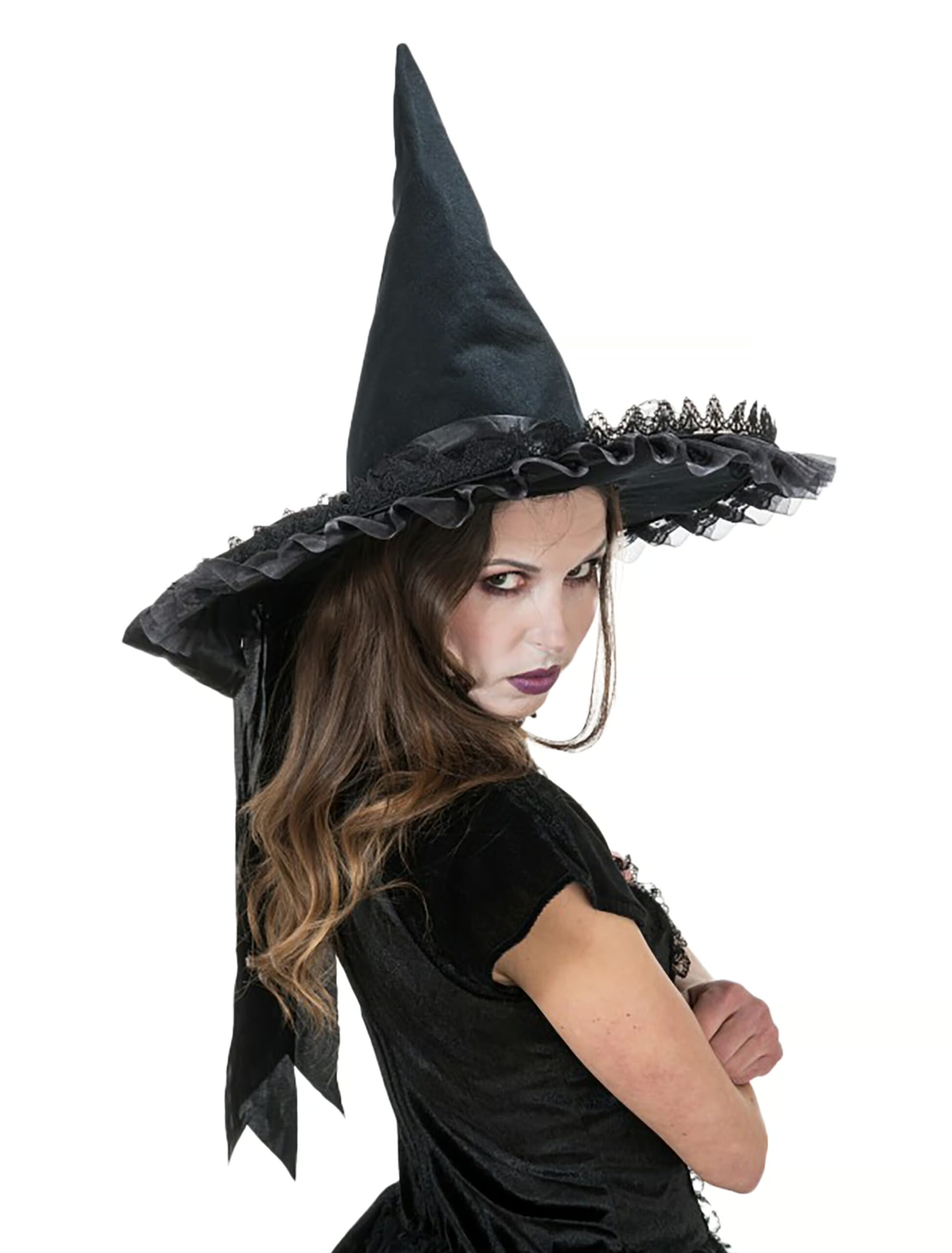 Hexenhut mit Spitze und Schleife schwarz one size, ideal für Karneval & Fasching
