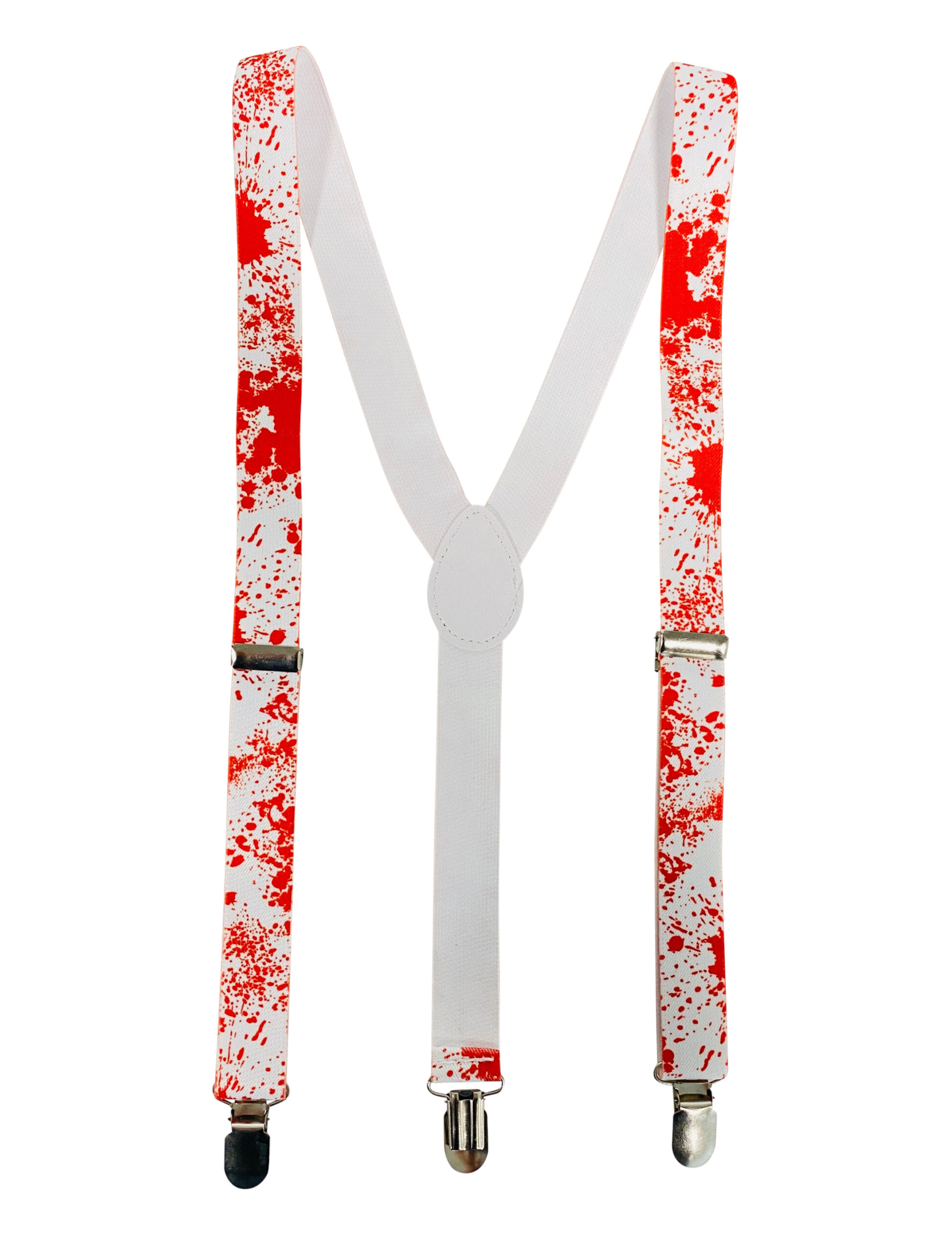 Ein super Accessoire für gruselige Halloween-, Horror- und schaurig schöne KarnevalsKostüme sind unsere 2,5 cm breiten, blutigen Hosenträger aus Polyester und Elasthan, die in Y-Form mit zwei Trägern vorne und einem Träger auf der Rückseite sowie individueller Längenverstellung und praktischen Halteclips Deinen originellen ZombieKostümen und Halloween-Outfits den letzten Schliff geben. Und mit den passenden Teilen aus unserem Shop kannst Du zu Halloween und auf Motto-Partys den Gruseleffekt noch steigern.