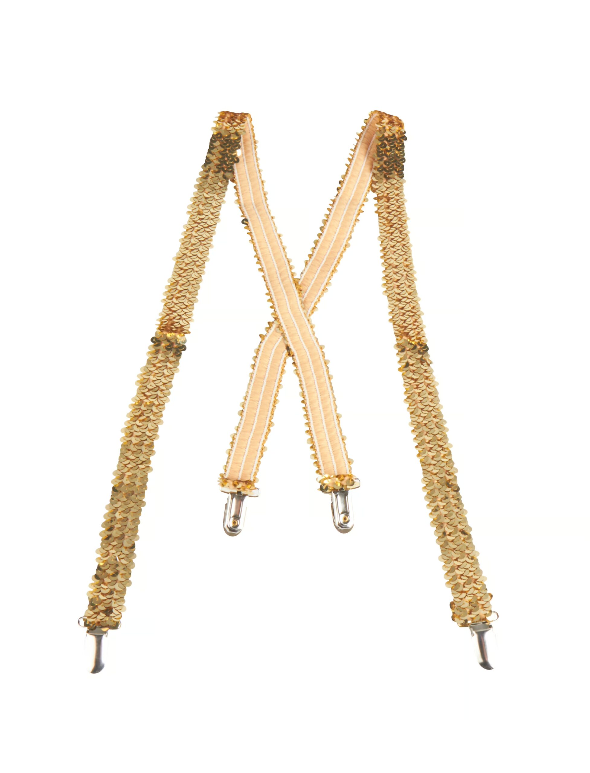 Du bist auf der Suche nach extravaganten Hosenträgern für Dein Kostüm? Dann ist diese auffällige Variante mit glitzernden Pailletten vielleicht genau das Richtige! Die goldenen Hosenträger halten Dein Beinkleid sicher an Ort und Stelle und fallen durch die funkelnden Pailletten garantiert auf!
