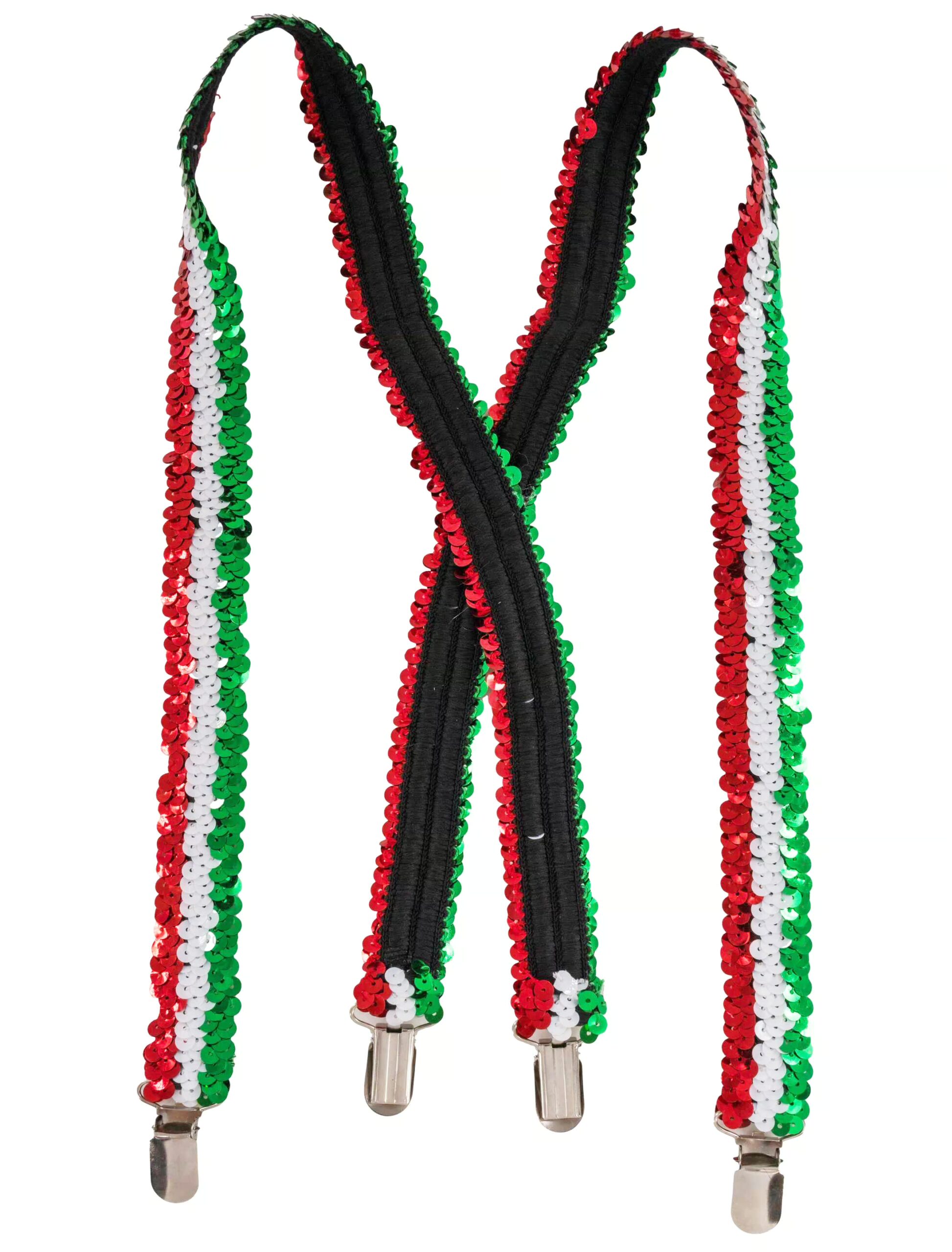 Pasta, Pizza, Mode – Italien hat uns schon viele großartige Dinge geschenkt. Und jetzt kommen unsere glitzernden Pailletten Hosenträgern in den Farben der italienischen Flagge daher und bringen Bella Italia direkt auf die Tanzfläche! Ob für die Mottoparty, Karneval oder einfach, weil du die italienische Lebensfreude ausstrahlen willst: Diese Hosenträger sind ein echter Hingucker. Rot, Weiß und Grün funkeln in jeder Bewegung und zeigen der Welt, dass du Stil hast. Kombiniere sie mit einem weißen Hemd und sei der schillernde Botschafter der Dolce Vita, oder geh all-in mit einem Outfit, das sogar in Venedig einen Catwalk verdient hätte. Sei der glitzernde Beweis, dass Italien nicht nur ein Land, sondern ein Lebensgefühl ist!