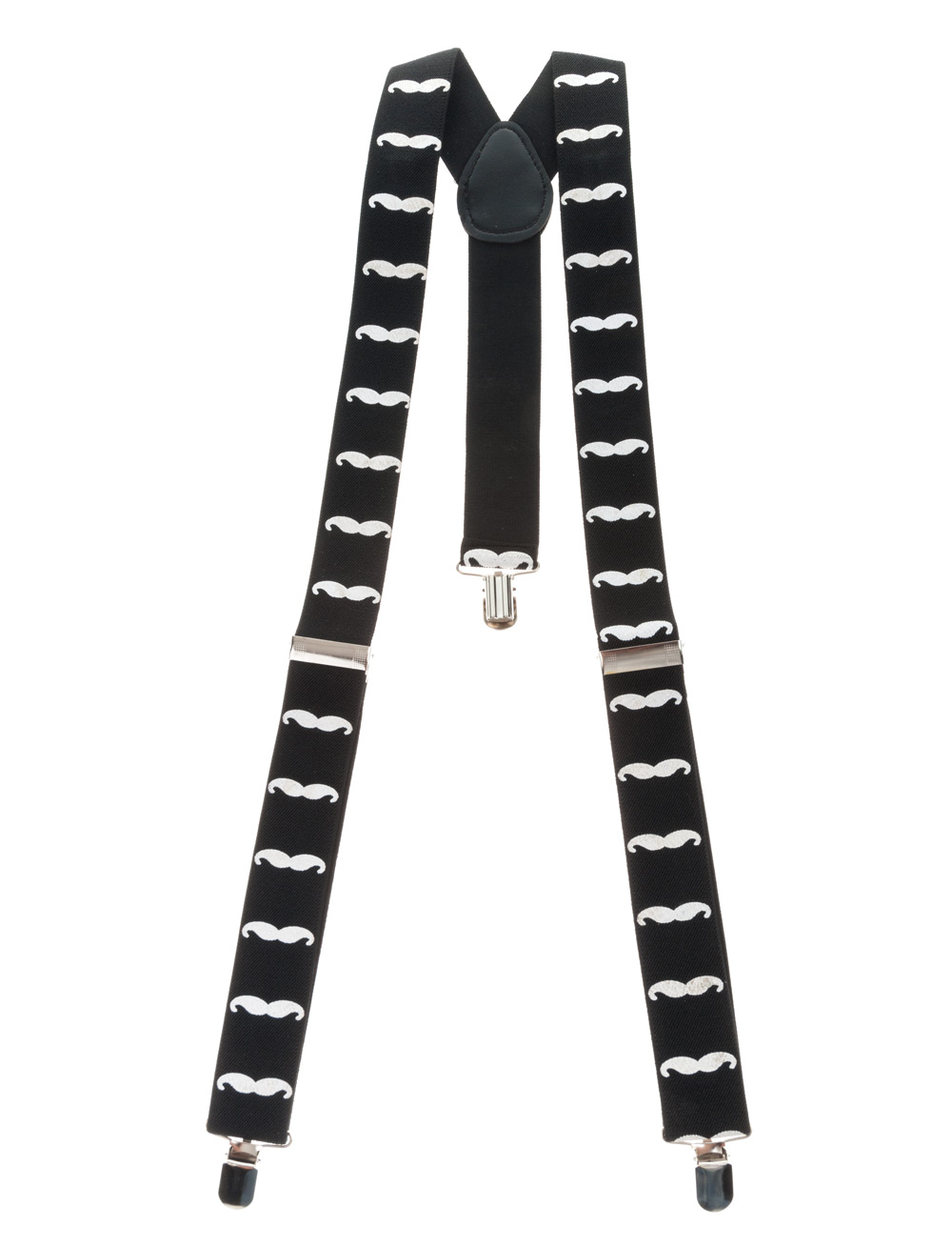 Mit der Hipsterwelle kam auch der Schnäuzer wieder groß in Mode und heute trägst Du den neuen Trend sogar auf Deiner Kleidung. Schnall die Hosenträger einfach um und klemm sie Dir mit Hilfe der Klammern an Deine Hose. Zeige die schönen Moustaches. Fehlt nur noch ein weißes oder schwarzes Hemd – fertig ist das Outfit!