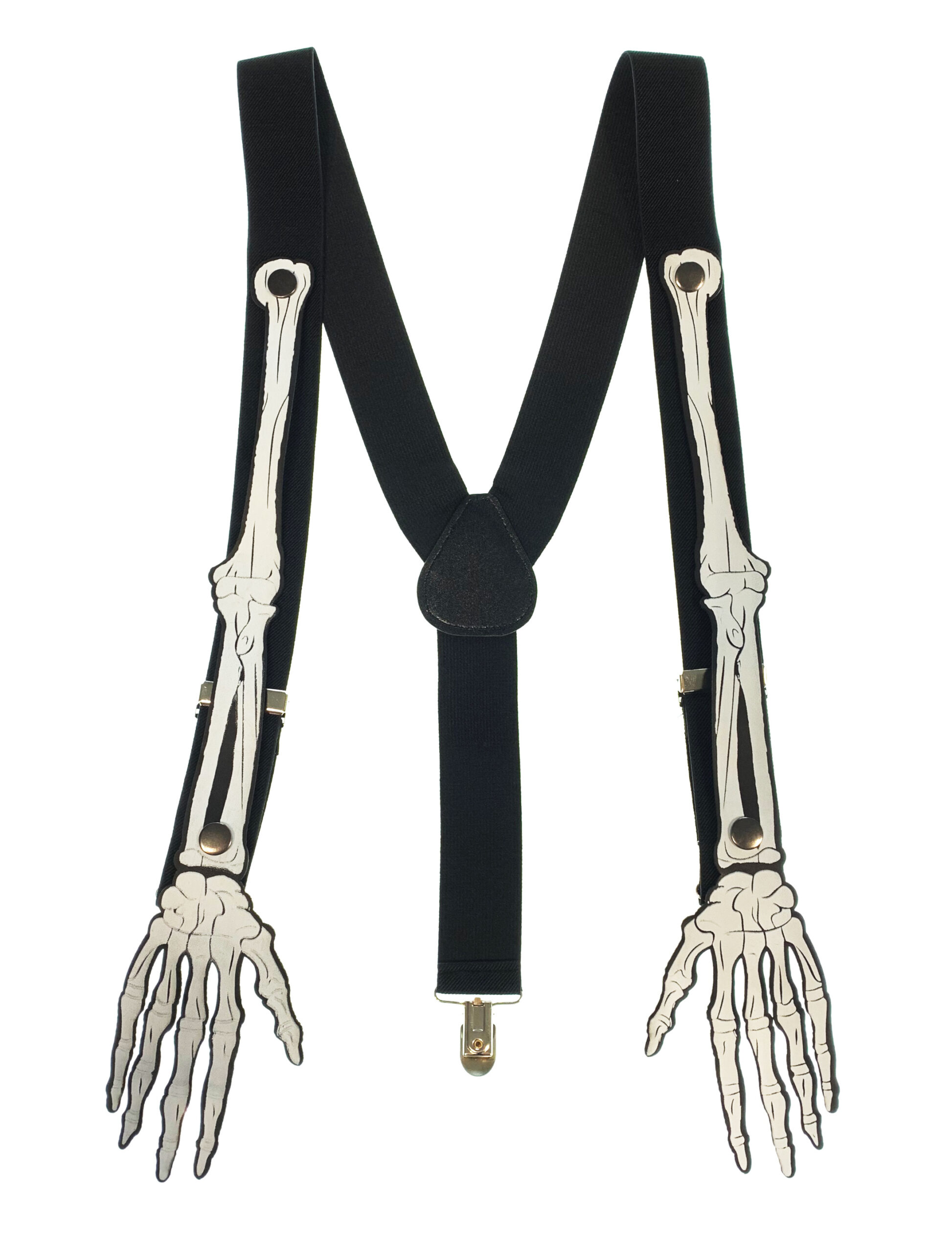 Kostümzubehör Hosenträger Skeletthände schwarz/weiß