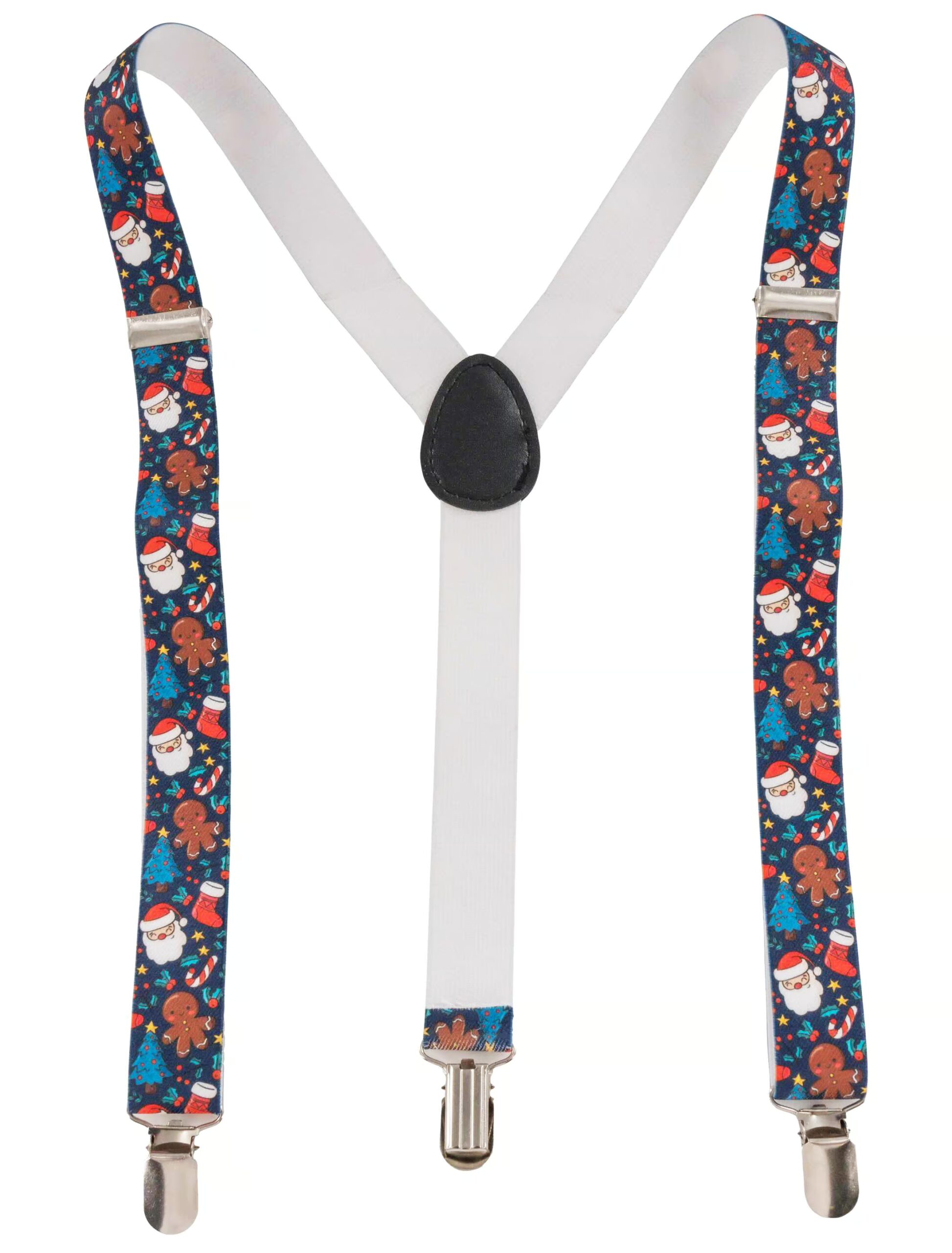 Halt dich fest, denn diese Hosenträger sind alles, was du für die ultimative Weihnachtsstimmung brauchst! Ob du Geschenke verpackst, dich durch den Plätzchenberg kämpfst oder unter dem Mistelzweig auf dein Glück hoffst – mit diesen Hosenträgern bist du immer in bester Festtagsform. Die liebevoll gestalteten Motive sind ein wahrer Augenschmaus: Weihnachtsmänner, Lebkuchen, Tannenbäume, Mistelzweige und Sterne. Wenn das mal nicht der Stoff ist, aus dem Festtagslegenden gemacht werden! Außerdem verleihen sie jedem Outfit den „Ho-ho-ho“-Faktor. Egal ob auf der Firmenfeier, beim Familienessen oder der Ugly-Christmas-Pulli-Party: Diese Hosenträger garantieren dir bewundernde Blicke!