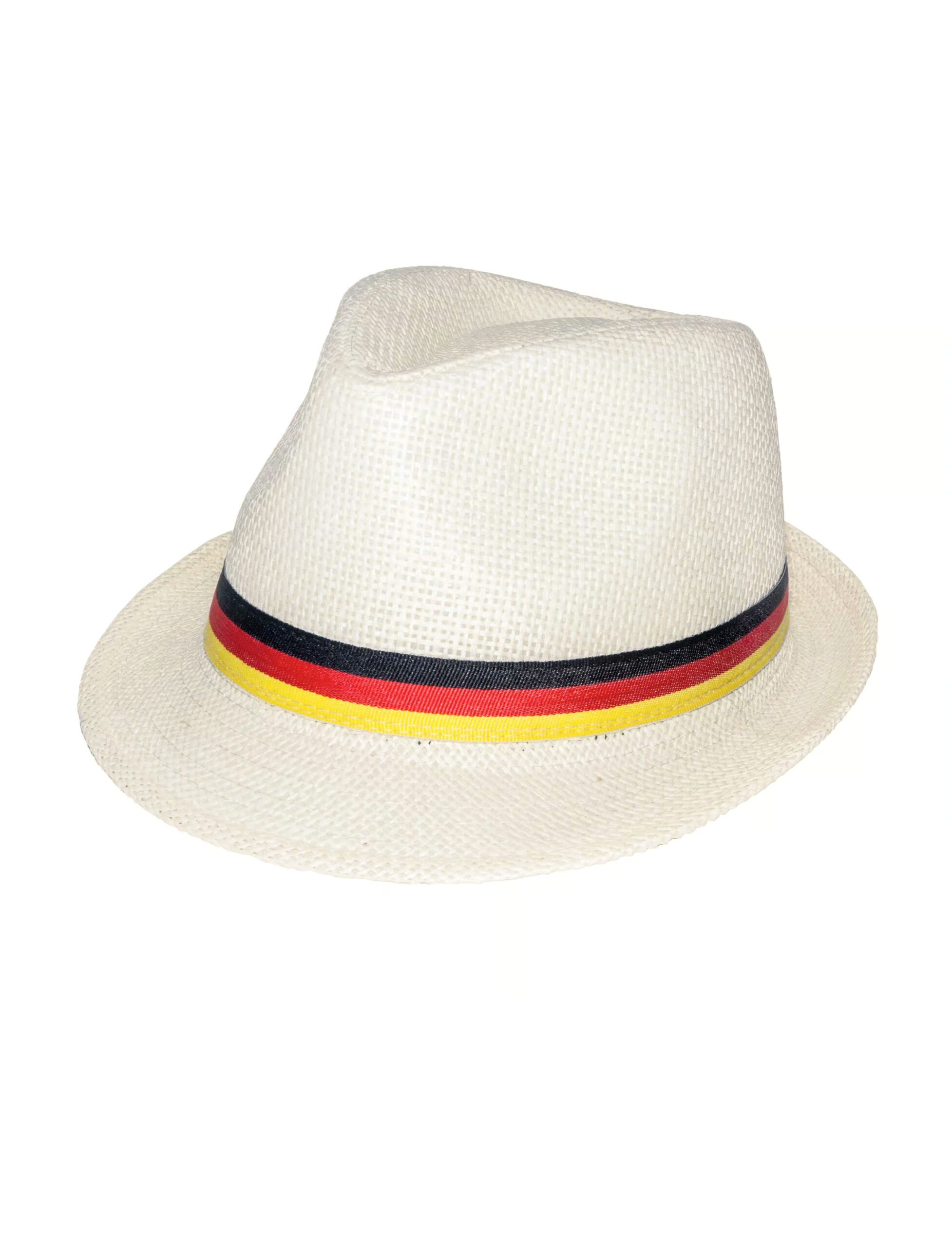 Es wird höchste Zeit sich zur nächsten Fußball EM oder WM die passende Kopfbedeckung zu besorgen. Unser sommerlicher Panamahut mit schwarz-rot-goldenem Band ist die perfekte Ergänzung für jedes Fan-Outfit. Damit bist Du vor knallender Sonne beim Public Viewing geschützt und zeigst dabei auf elegante Art und Weise, dass Du voll hinter Jogi und seinen Jungs stehst!