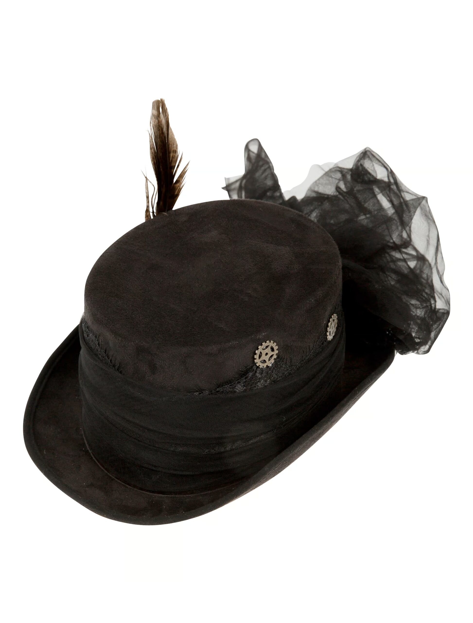 Kostümzubehör Hut Steampunk mit Tüll schwarz 61