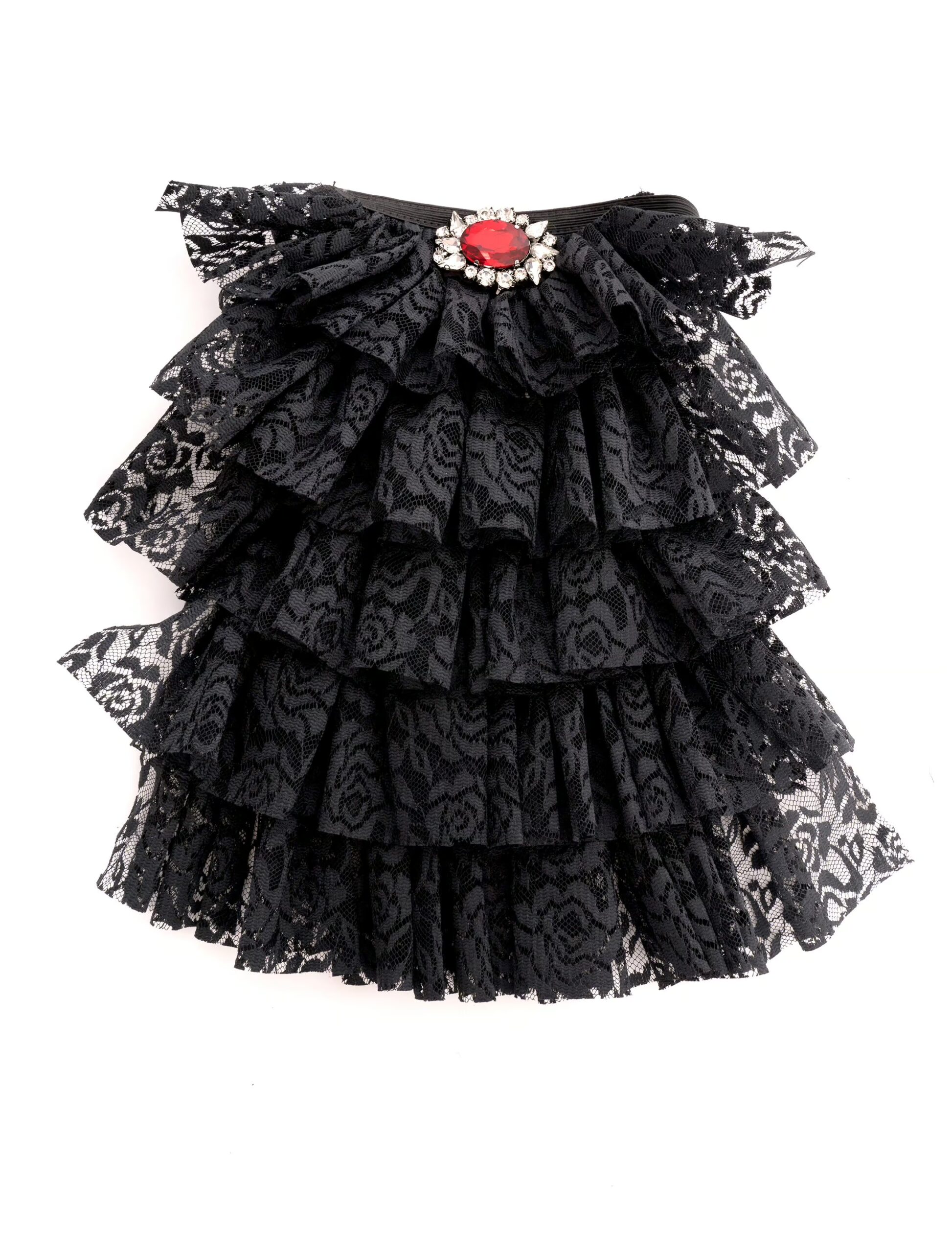 Kostümzubehör Jabot schwarz Spitze mit rotem Stein
